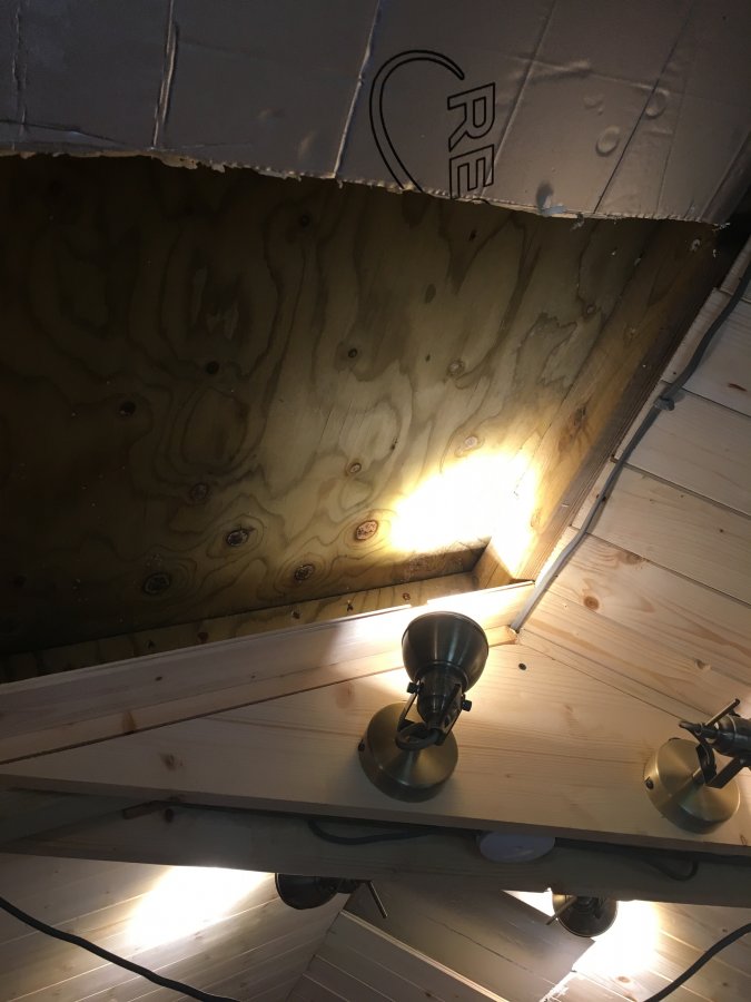 Internal roof structure with PIR removed, showing ply outer skin (which is felted on the external face):