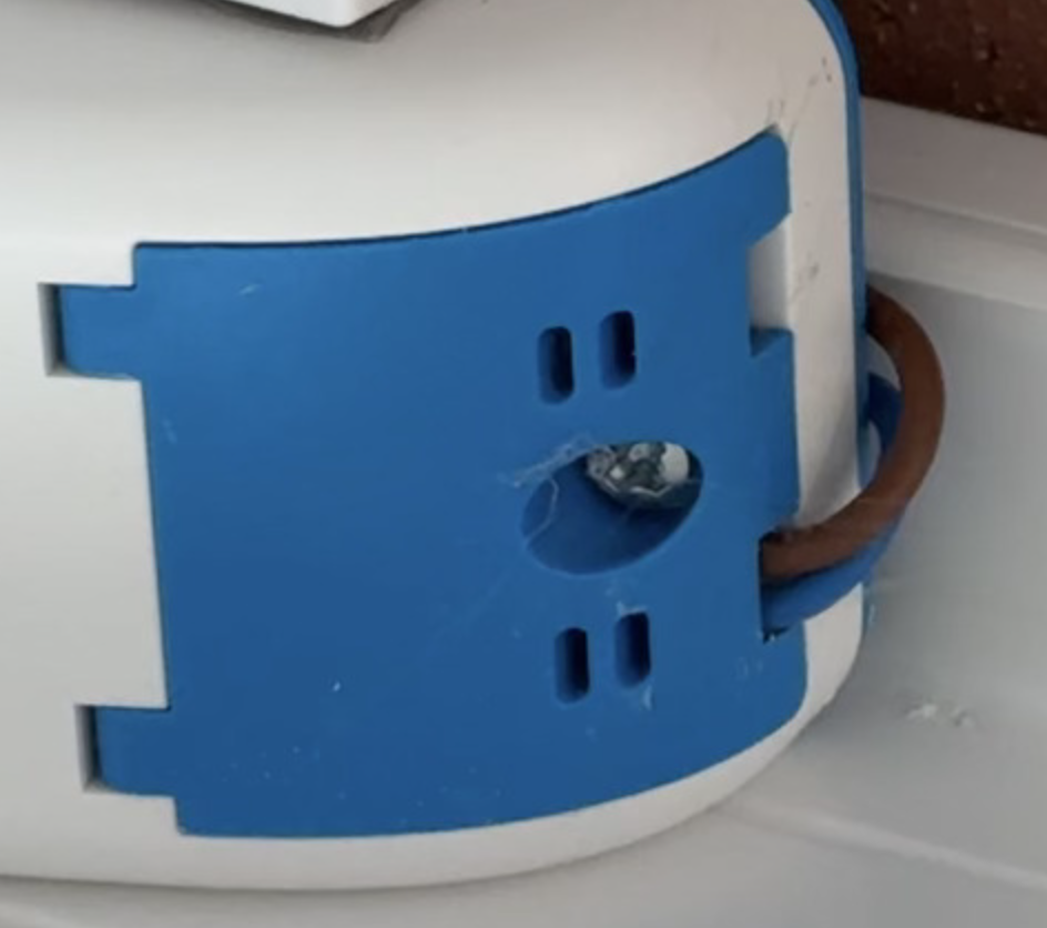 Yes, I'm assuming he was meant to hide it... even though the actual live wires are covered, I know what you mean because the actual wires are visible that's probably against the regulation?