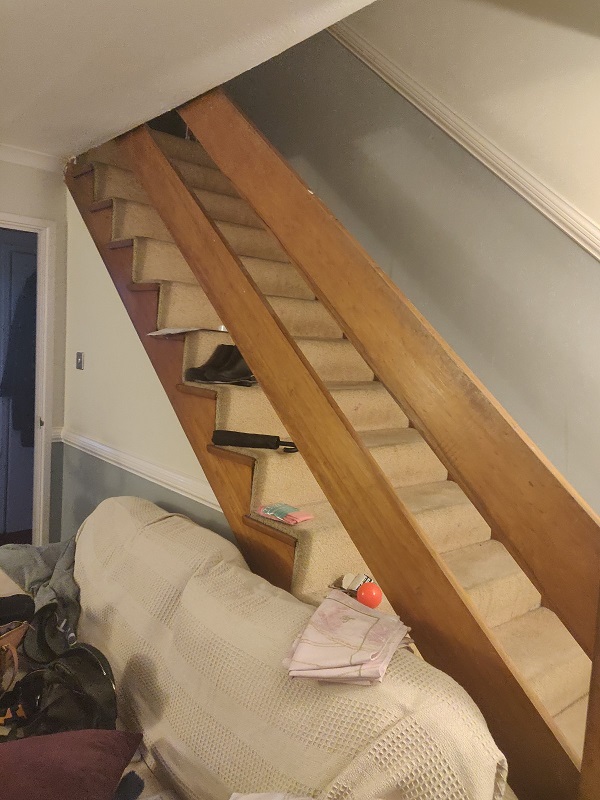 The stairs are a key part of the room as they're so physically visible and present. The wood is fairly dark and not very nice looking in my view. I have seen others stairs and many are painted white.