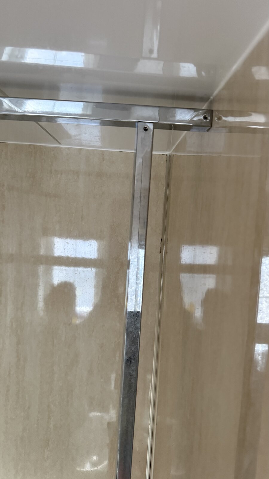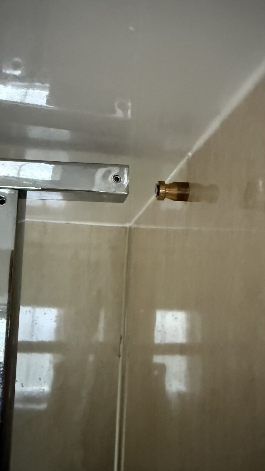 The shower casing in the attached picture has come loose at the top. We think there should be a screw in the hole in the shower casing (nearest the wall) to hold the shower casing onto a bolt that is anchored into the wall - so hopefully just need the correct screw put in and tightened.