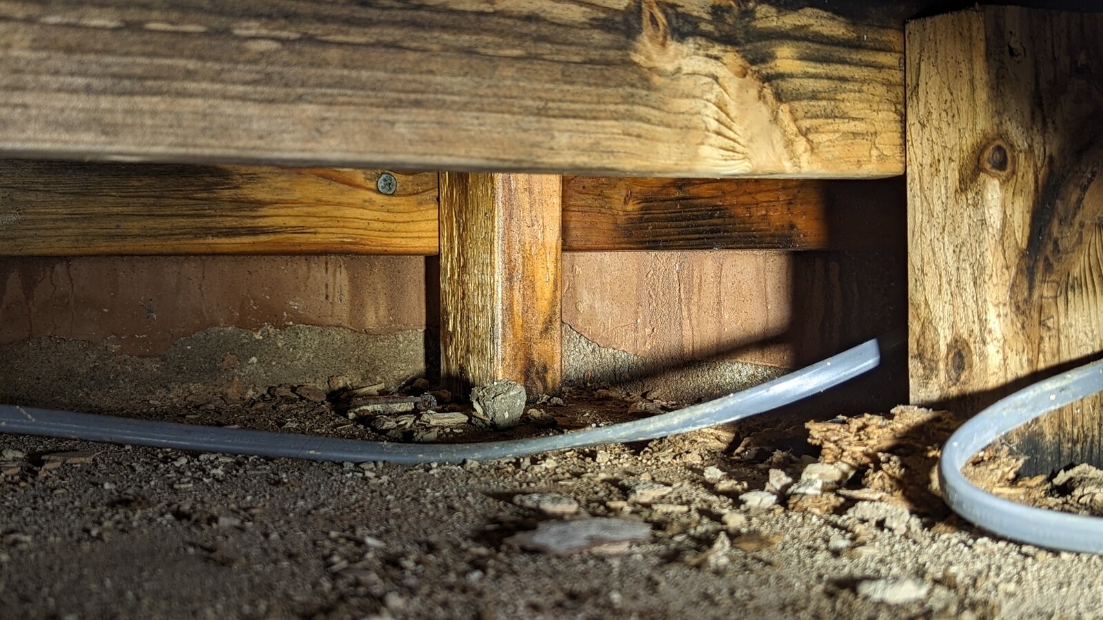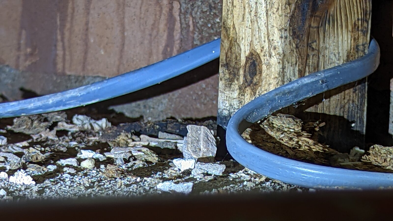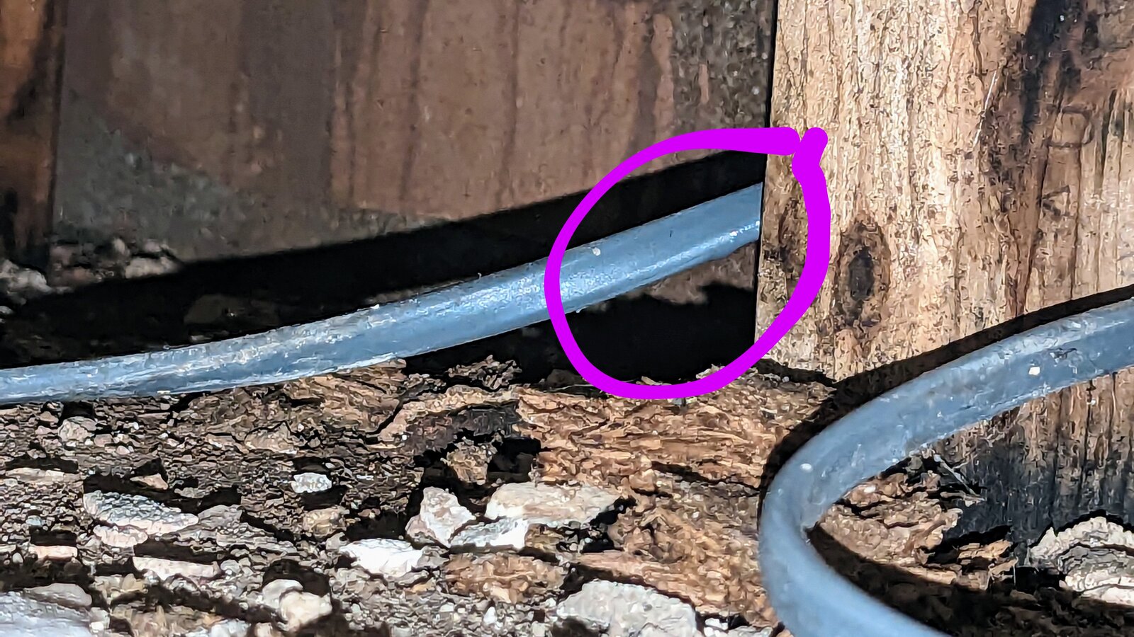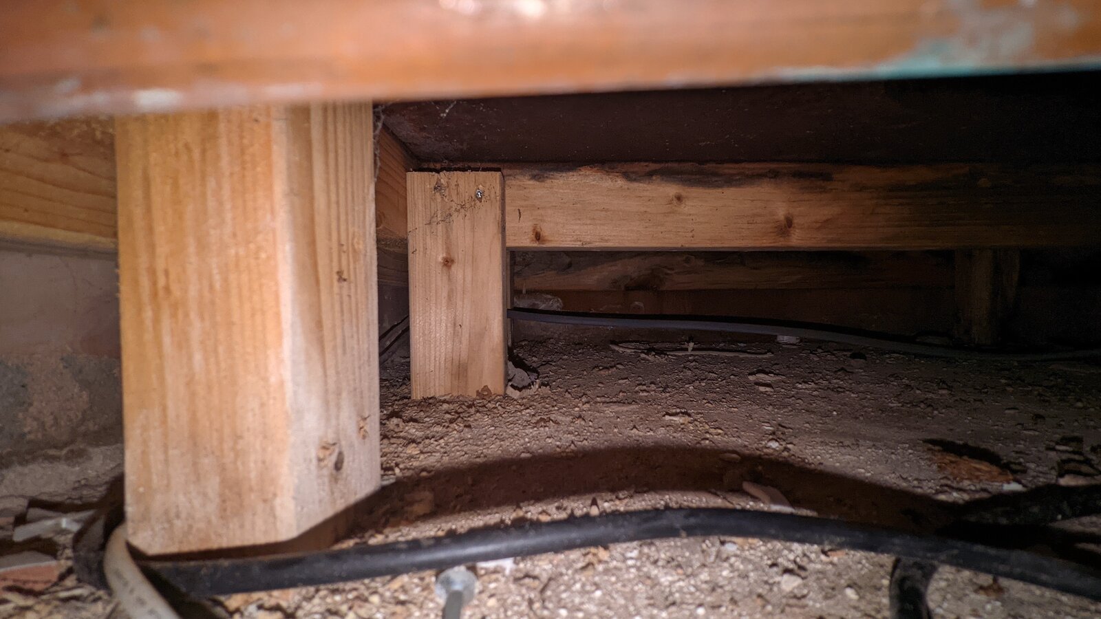 I can't work out where it's coming from. There has been a mould patch on the ceiling which happens to be above the wet 2x4, but that would require water running down behind the tiles... could it? But... there is no sign of wetness above and no wet patch per se just condensation type black mold.