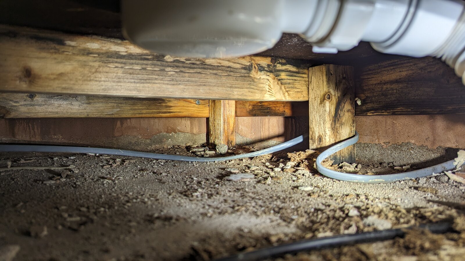 Except, went to have a shower earlier and checked underneath and it's soaking on the 2x4 frame farthest from the trap or any of the supply pipes.