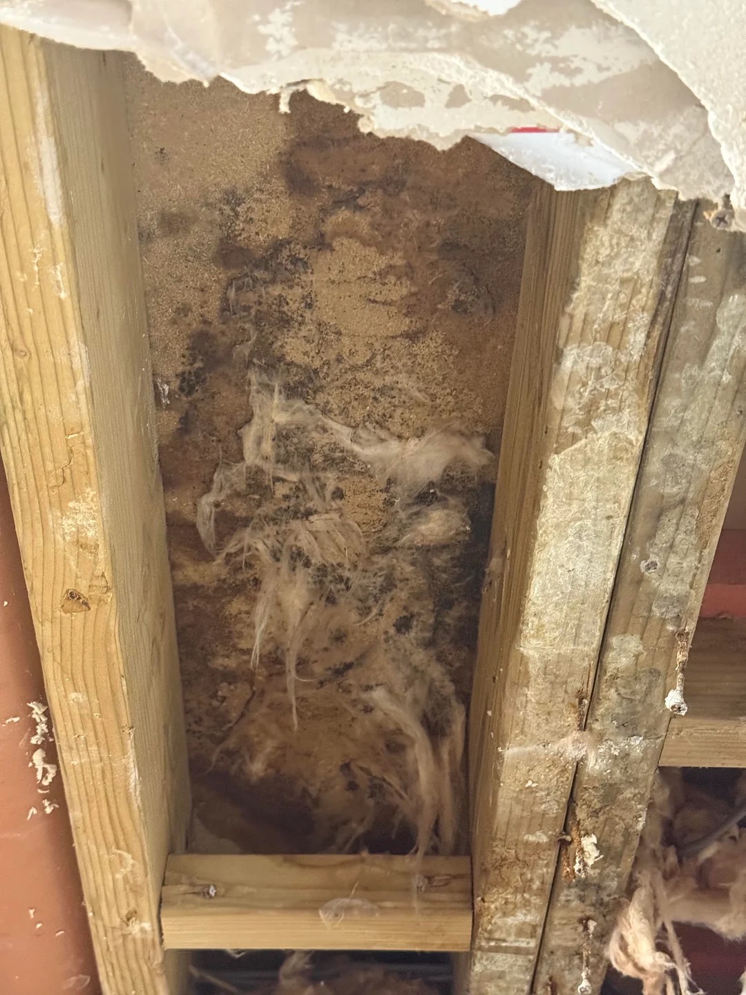 Looking into the wall cavity there's black there, as you can see there are joists on the side, do you think the mould will have spread to the other side of the joists / do we need to open up more of the wall to get to that to clean it?