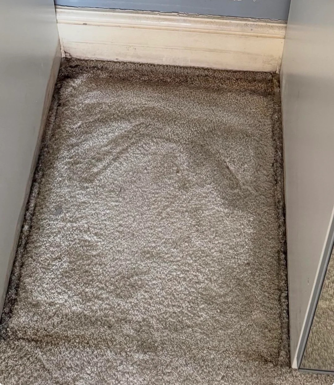 In the bedroom we have opened up the wall to dry it out and fix the pipe. We've moved one part of the wardrobe out and as you'll see the carpet is pretty bad. We still need to move the other parts of the wardrobe to see what the carpet is like under those. Is this carpet in anyway salvageable? My guess is we need to rip it up and look under it as it's likely based on what's going on in the garage below that it's soaked all the way through?
