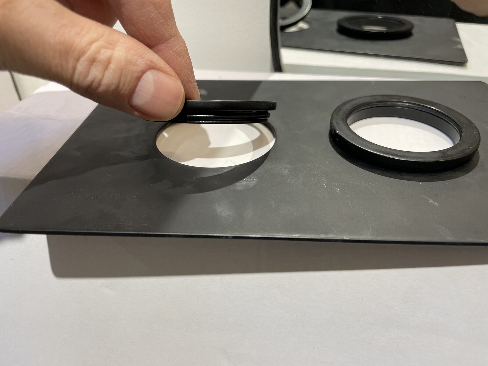 I was determined today to start prepping bathroom for microcement but have run into a problem with this shower mixer face plate. it has two metal rings that go between the plate and the control but I can’t fit these through the plate! Tried fairy liquid, lever, squeeze, whacking but can’t get them through and now wondering if they were supposed to come already fitted.