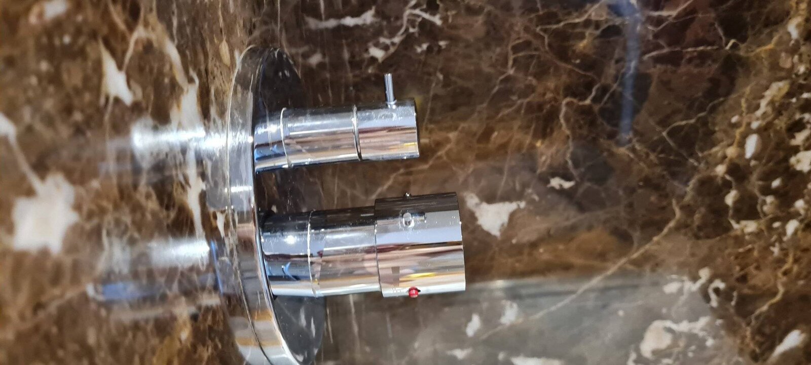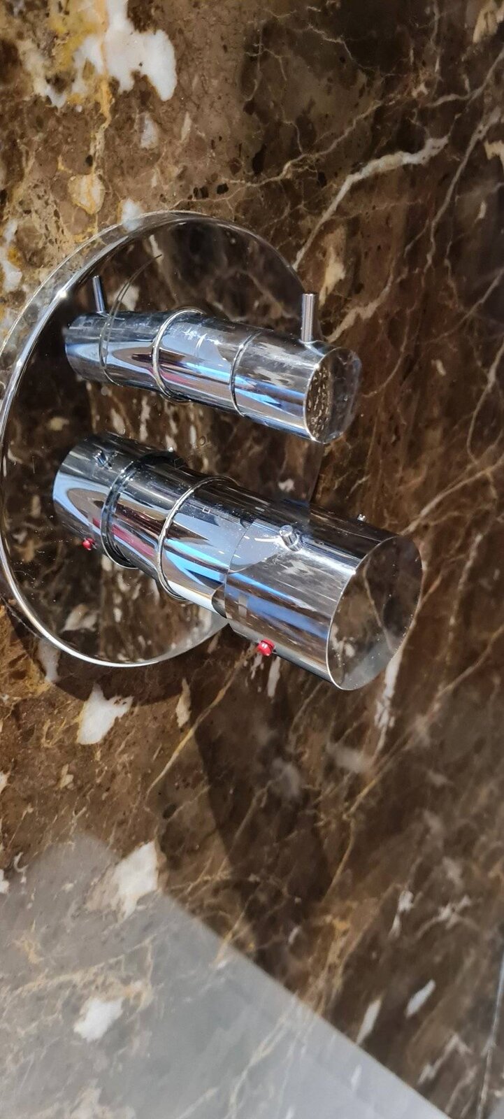 so we have this (AXOR) shower mixer, the top dial which is the flow only now turns about a quarter of a turn, so water isnt that strong.