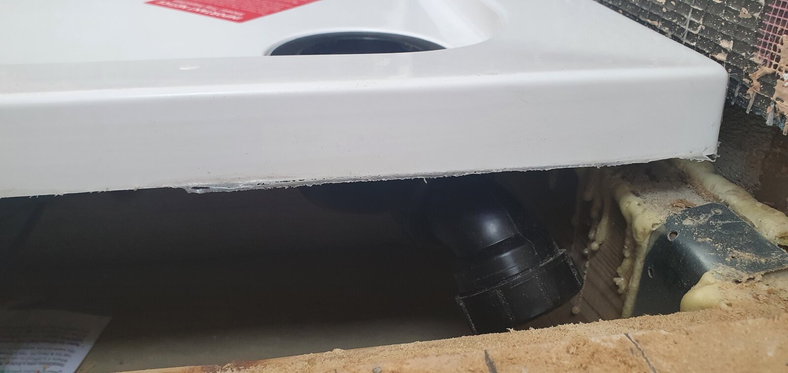 I've come to fit the shower tray amd planned to have the 40mm waste exit straight out the house (diagram 1) but the waste too tight to the wall as there is a ledge board holding the joists. Can't get the 45 straight before hitting a ledger board (see pic) and don't want to go notching it out at the wall as think it'll be a big mess.