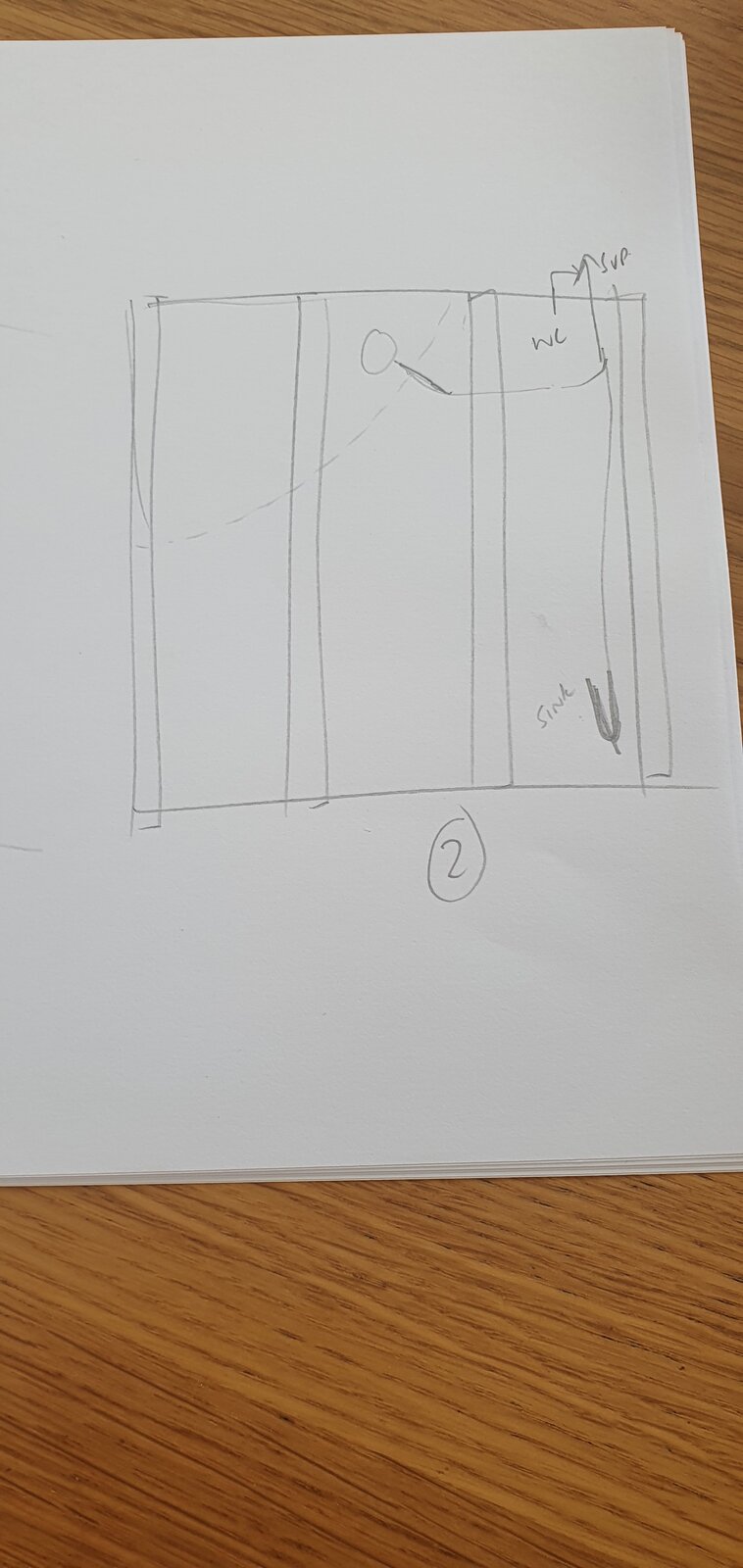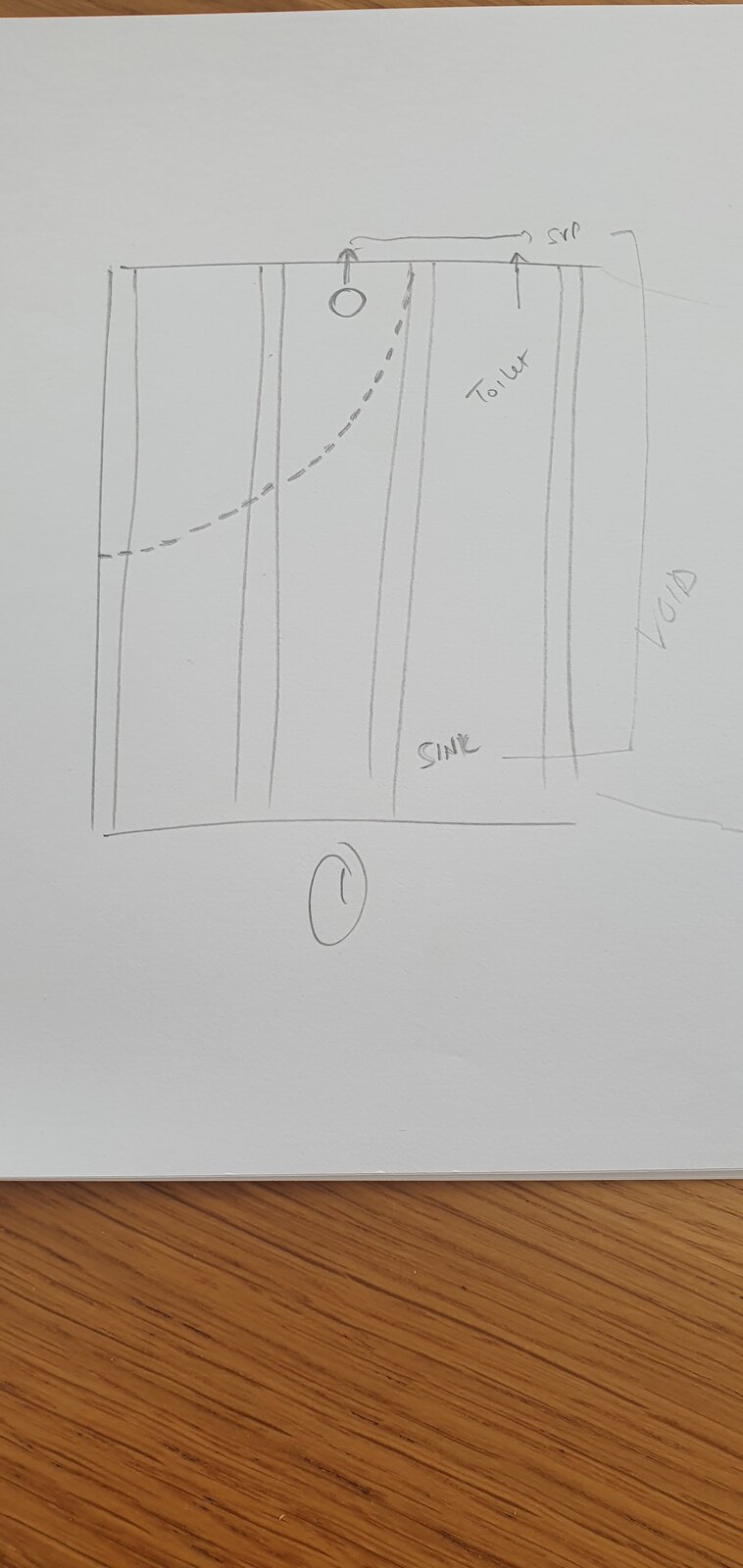 Would it be ok/better to have the waste come back on itself, cut a 40mm hole and go 1 joist across, use a sanitary T to join with the sink and exit out there instead (diagram 2). The joists are oversized at 47×220mm for 1.7m span (just matches the adjacent room with a 3.5m span)