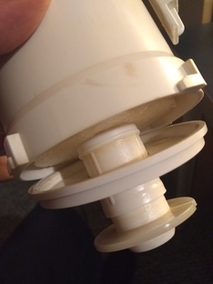 It's an old Siamp Storm 33 flush valve and it seems that the thin, circular plastic part that sits above the rubber seal (removed for the photo) is moving up and down freely when it should not.