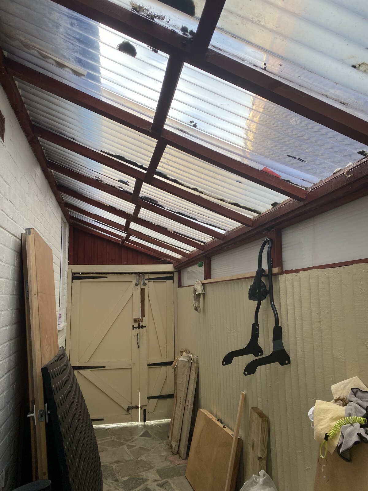 I would like to make this into a better space, ideally waterproof and secure (we would plan to keep motorbike in front section). But I just don't know what the options in terms of contruction types and what might be permitted. Is there someone who could be called around to ask? Obviously the lean-to part is the most urgent to do away with!