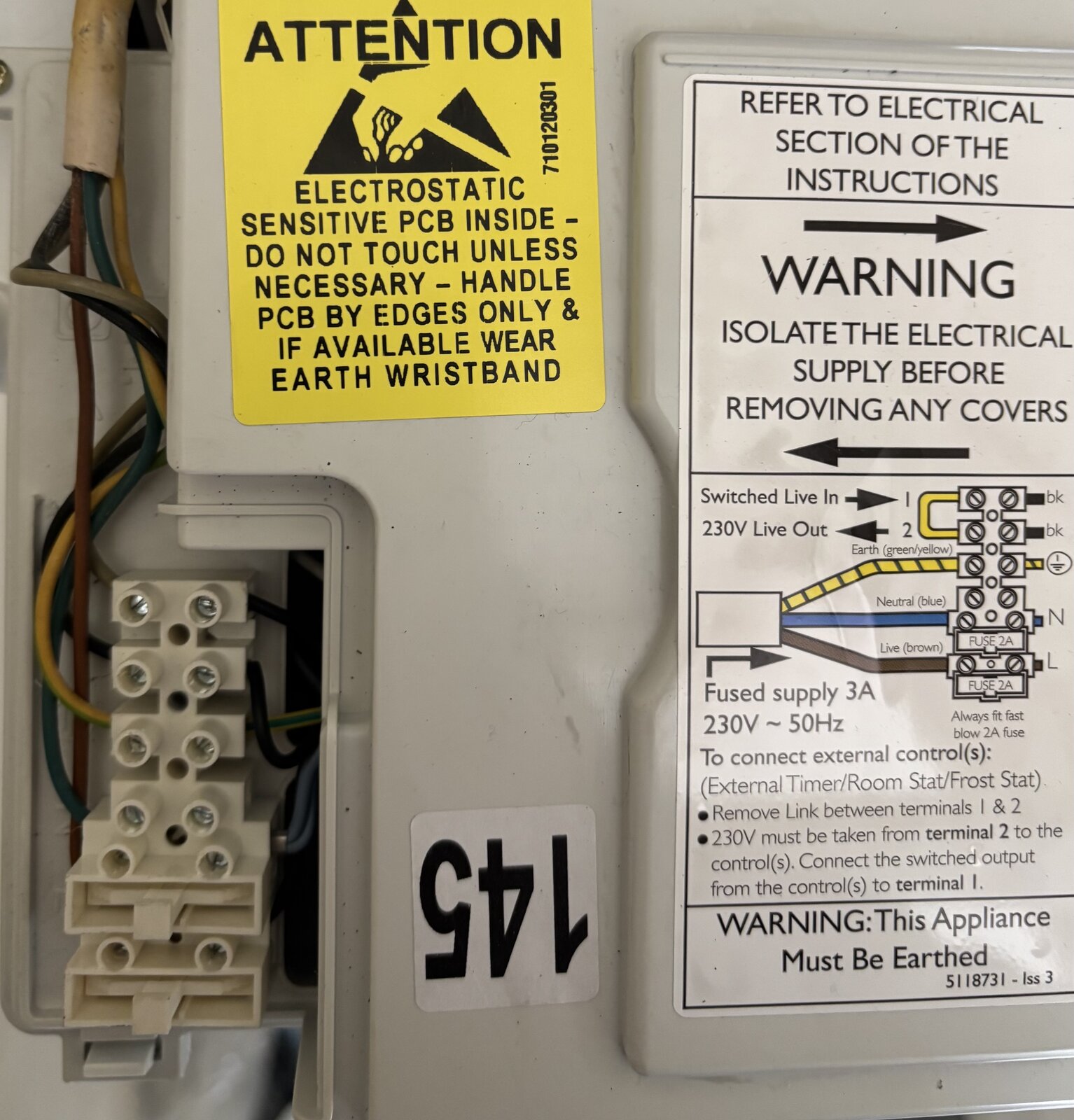 I then have a black, brown, grey and green (plus the earth mentioned above) going to the boiler.