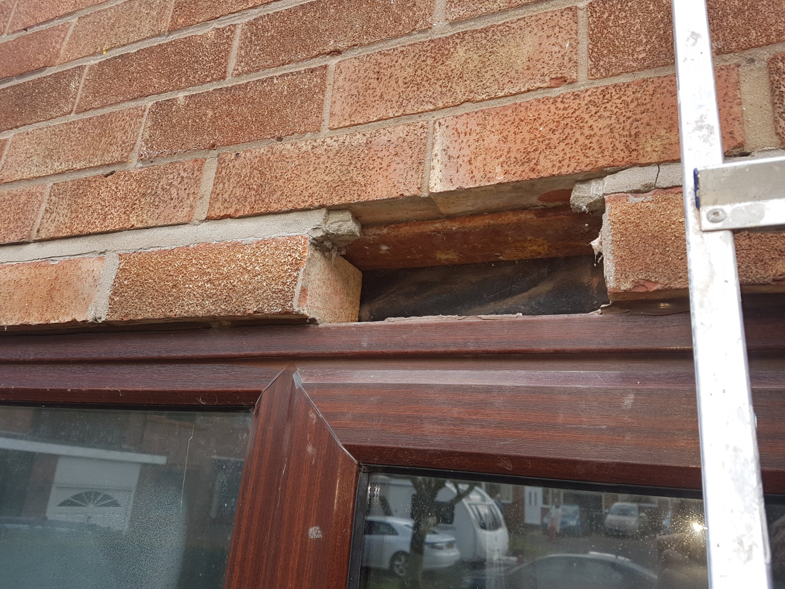 Above my lounge window (2.4 meters wide) the first course of bricks is unsupported. There is a lintel supporting the next course up, but the first course is effectively resting on the window frame. It' looks terrible and as im going to replace the windows, i would like to get this fixed at the same time. Anyone got any novel ways of rectifying this?