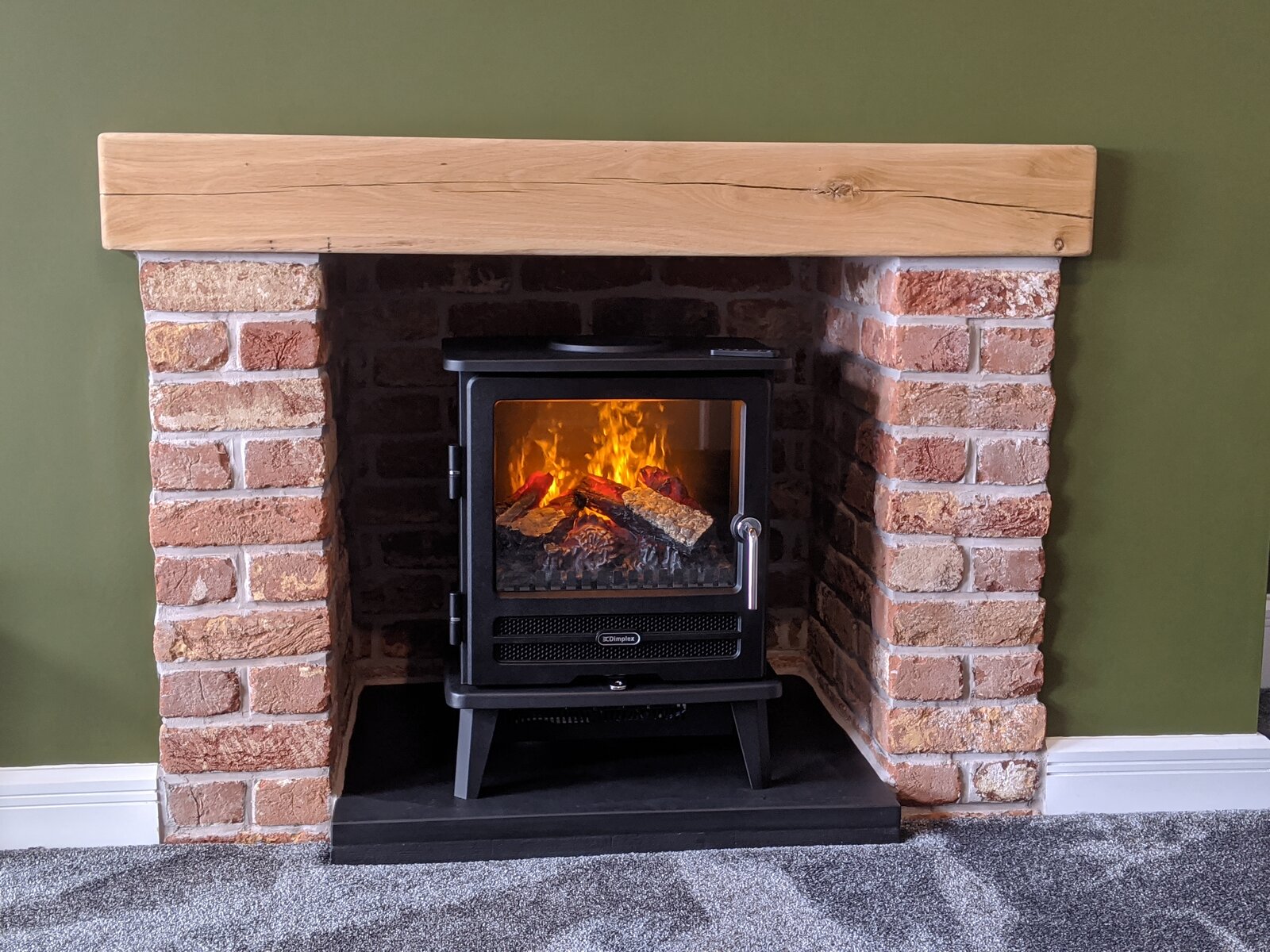 The sides are slips but the bricks at the rear are whole to create a narrow chimney and mortar was a dark grey. Then the dippy 'er indoors decided she wanted brick effect wallpaper on the chimney breast. Base was finished with Dark brown floor tiles with grey specks when the fire was changed.