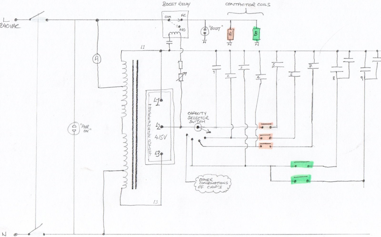 the machine has this "boost" function controlled by the voltage sensitive relay, which seems to be the start capacitor(s)