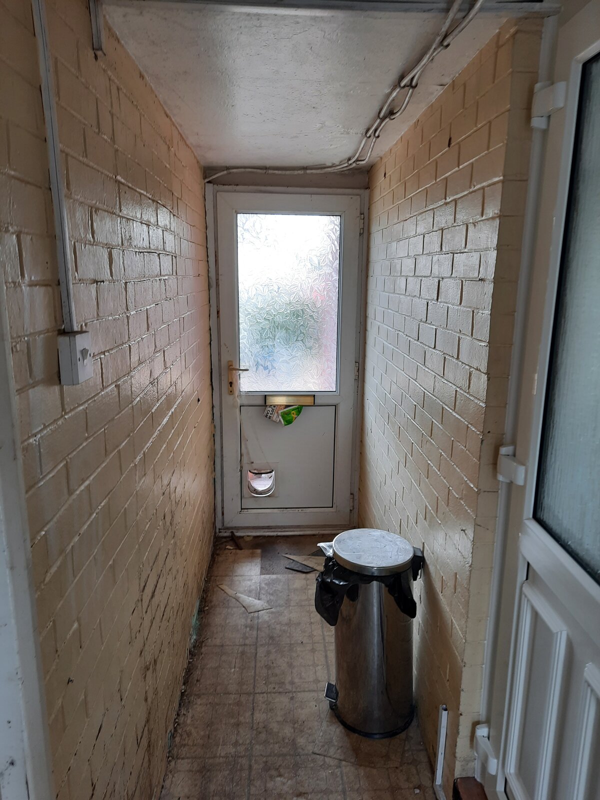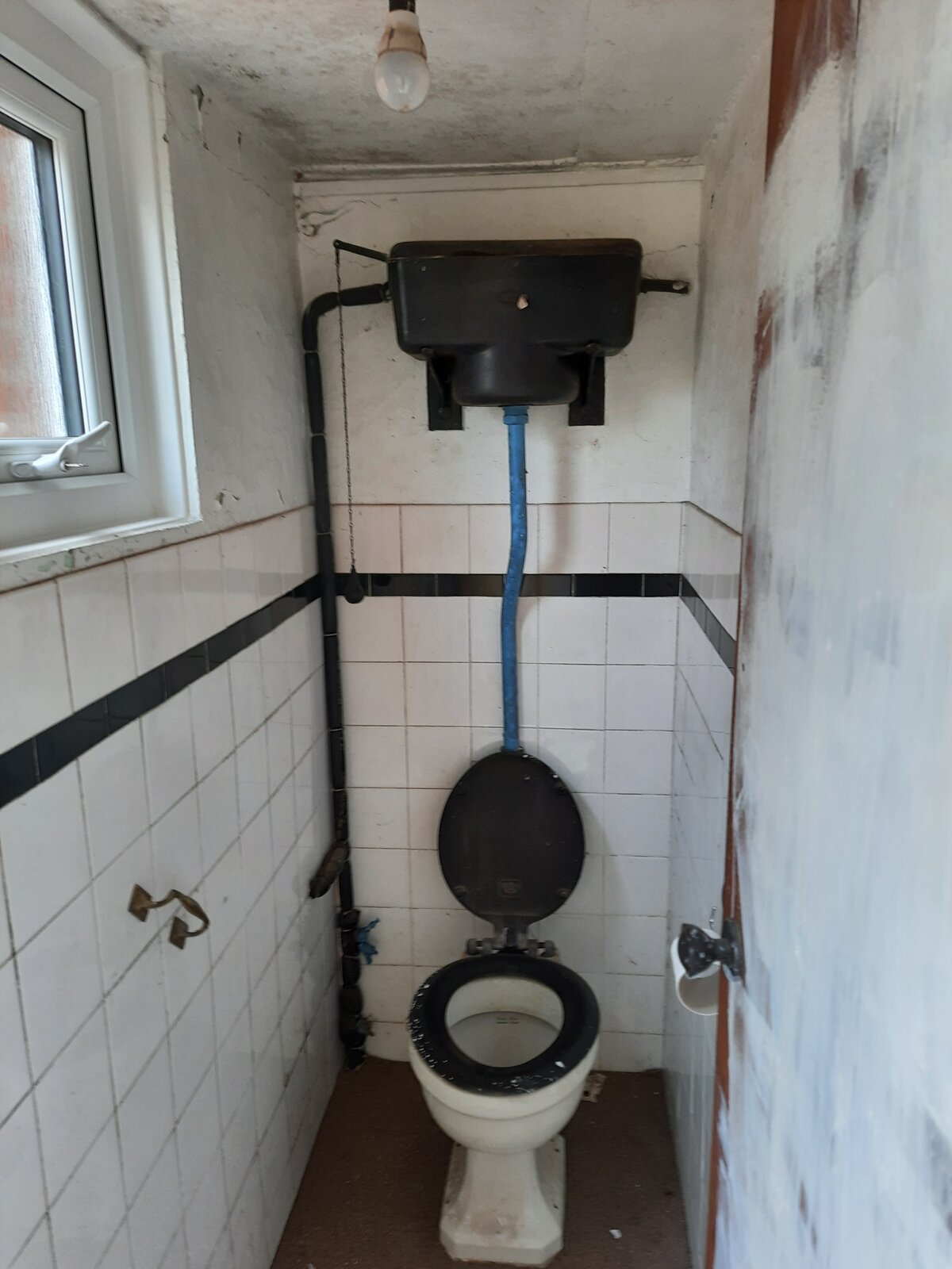 Inside, there are three main 'rooms'. There is a horrible 'alleyway', a main utility room (dumping cave), and original 1950s (horror movie) toilet. I've shown all this in the pictures. There is plumbing and electricity for the washing machine (and lights), but no heating.