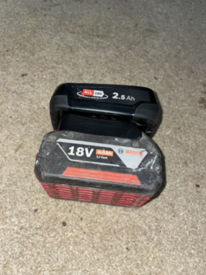 Mounted on a working Bosch battery (more capacity; the all4 charger will charge both batts if they're connected):
