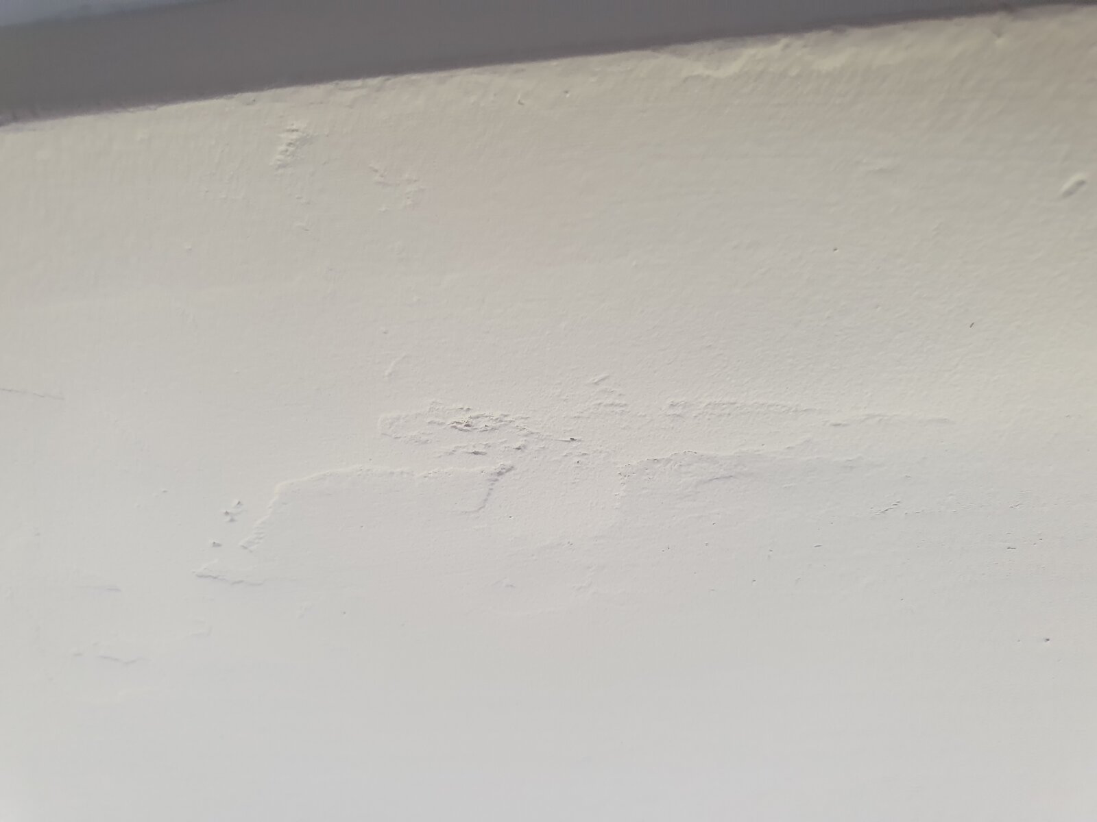 The room was re-plastered and the plaster obviously couldn't skim over the wooden plank. Instead the skim was done up to where the edge of the skim, meets the wooden plank.