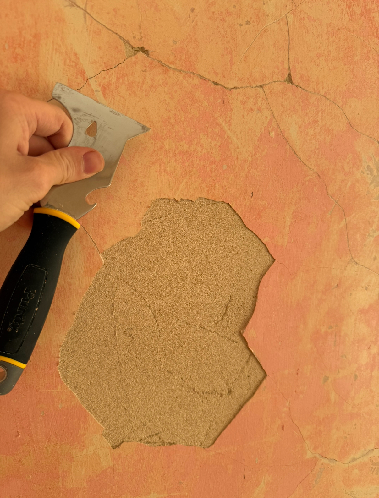I’ve stripped the wallpaper in the bedroom and there is a spiderweb of cracks underneath. Some are hairline, most are 1mm and there’s a few that are 2mm wide.