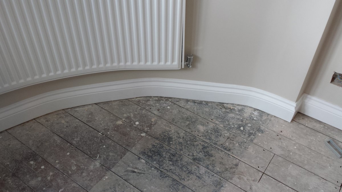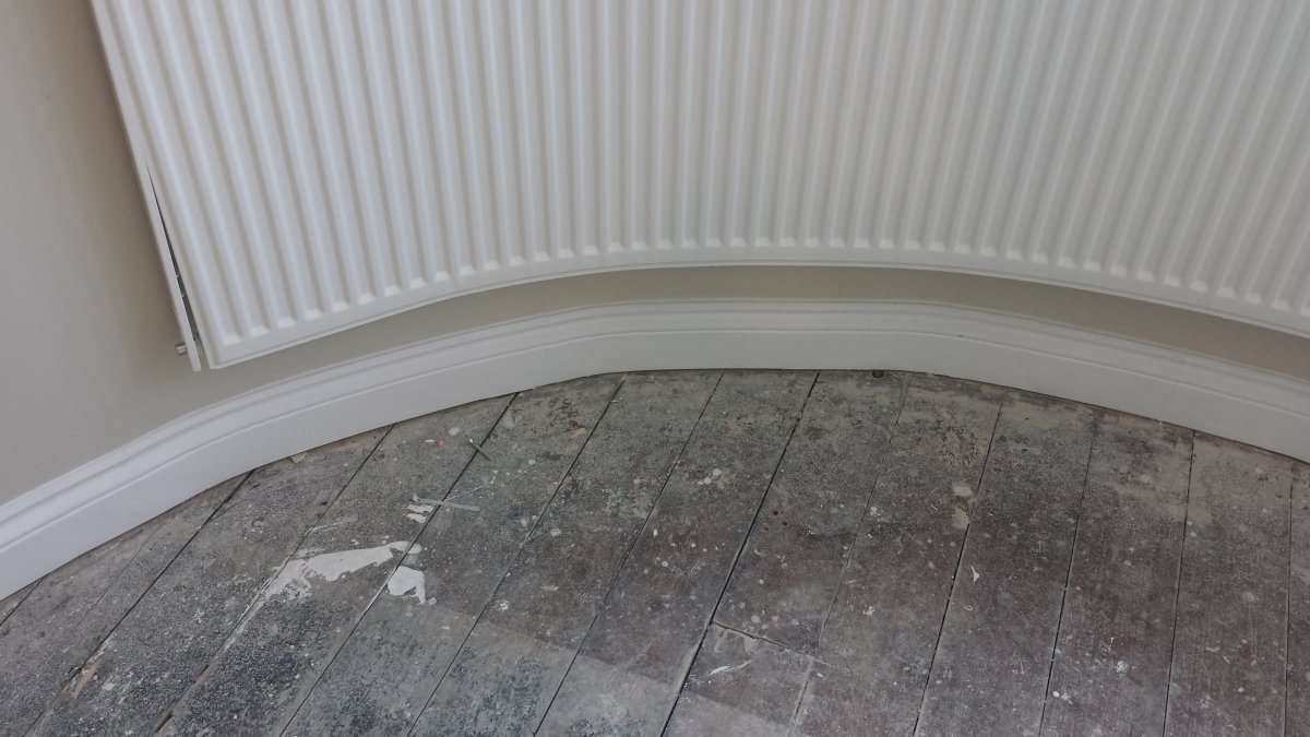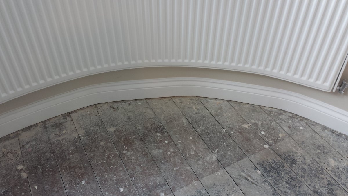 Sadly i gave up on the idea of bending the MDF, purely for the reason that i dont have a perfectly round shaped bay window (see previous posts) and in some area the bend required was far greater and bending smaller sections of the skirting board was proving to be impossible.
