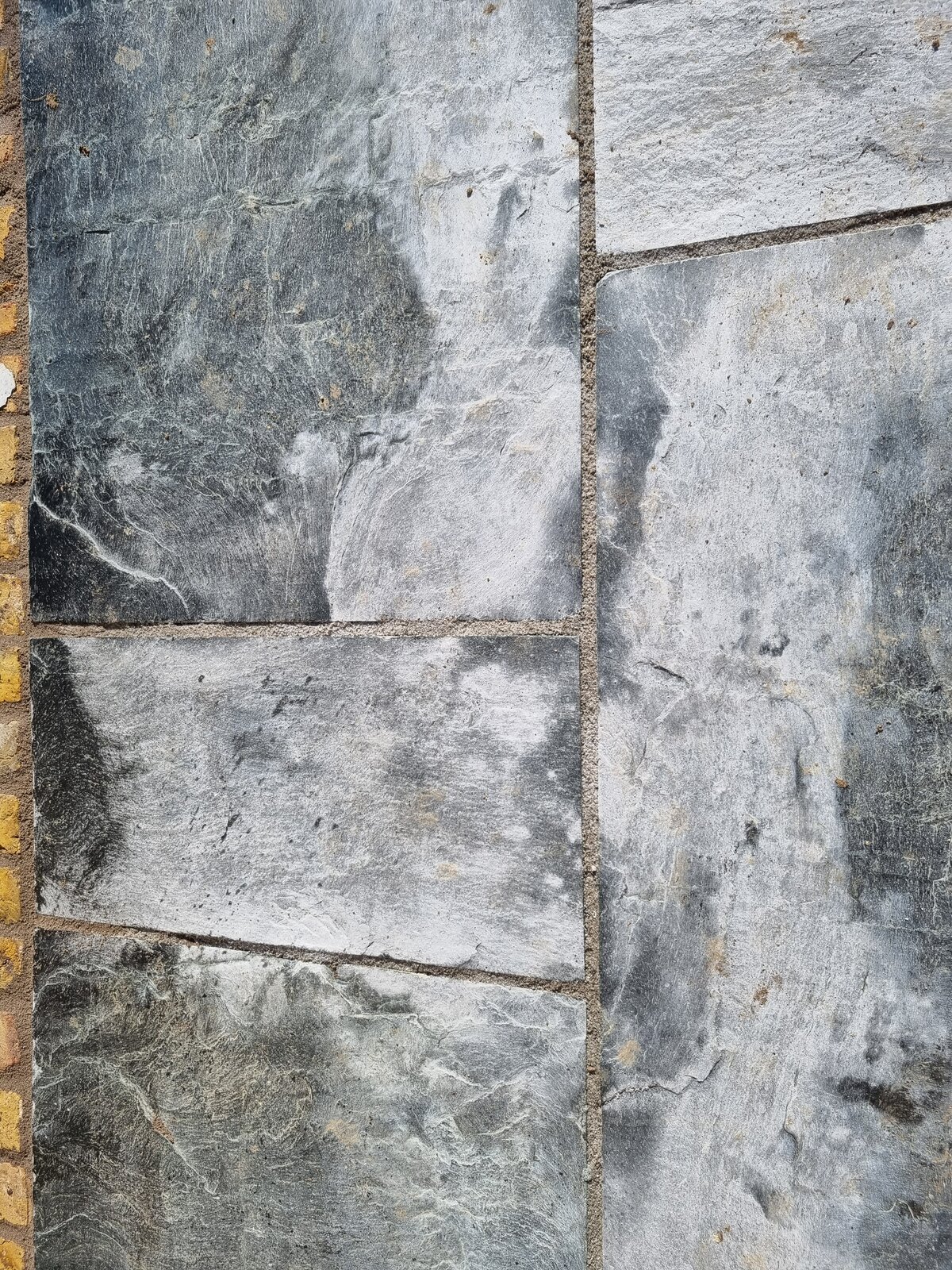 The slate supplier recommended to use Lithofin Builders Clean, which I just did, but it doesn't seem to make much of a difference. I used it 1:10 diluted with water, maybe it's too diluted?