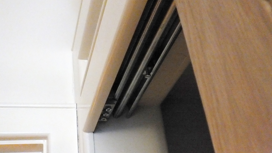 the other day I went to open one my wardrobe doors only to be greeted with a refusal. Took a while to get it to slide back but since then it's been a real PITA! I've no idea what's gone wrong but if you look at the picture I think you'll see that one end has dropped, well, judging by the rub mark at the at the top of the door. Is this something I can attended to or do I need to get someone in?