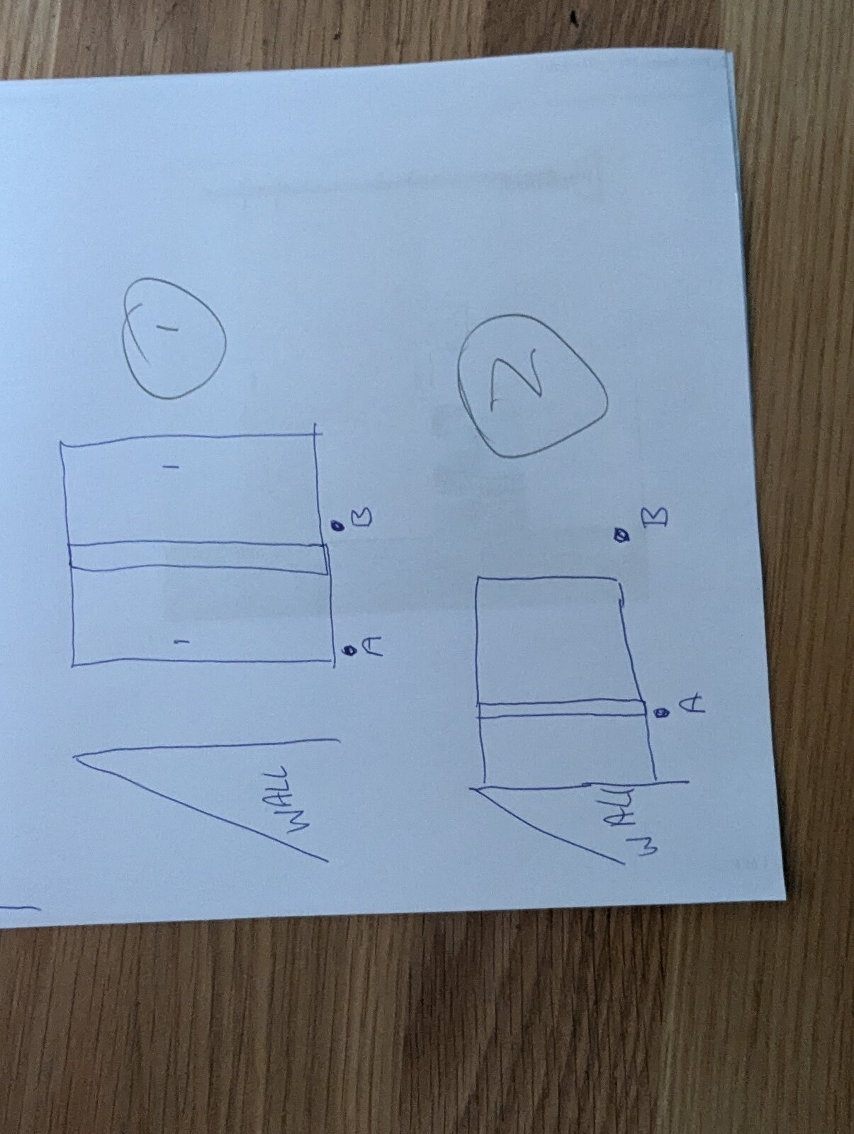 This has me baffled diagram attached. I am putting sliding doors between kitchen lounge. A B shows where i would normally put the bottom guides . But as they are bypass doors pulling past the part of the opening toward the wall surely when they are opened (diagram 2 ) they will fall off at point B. Any suggestions .Thanks Sorry now attached