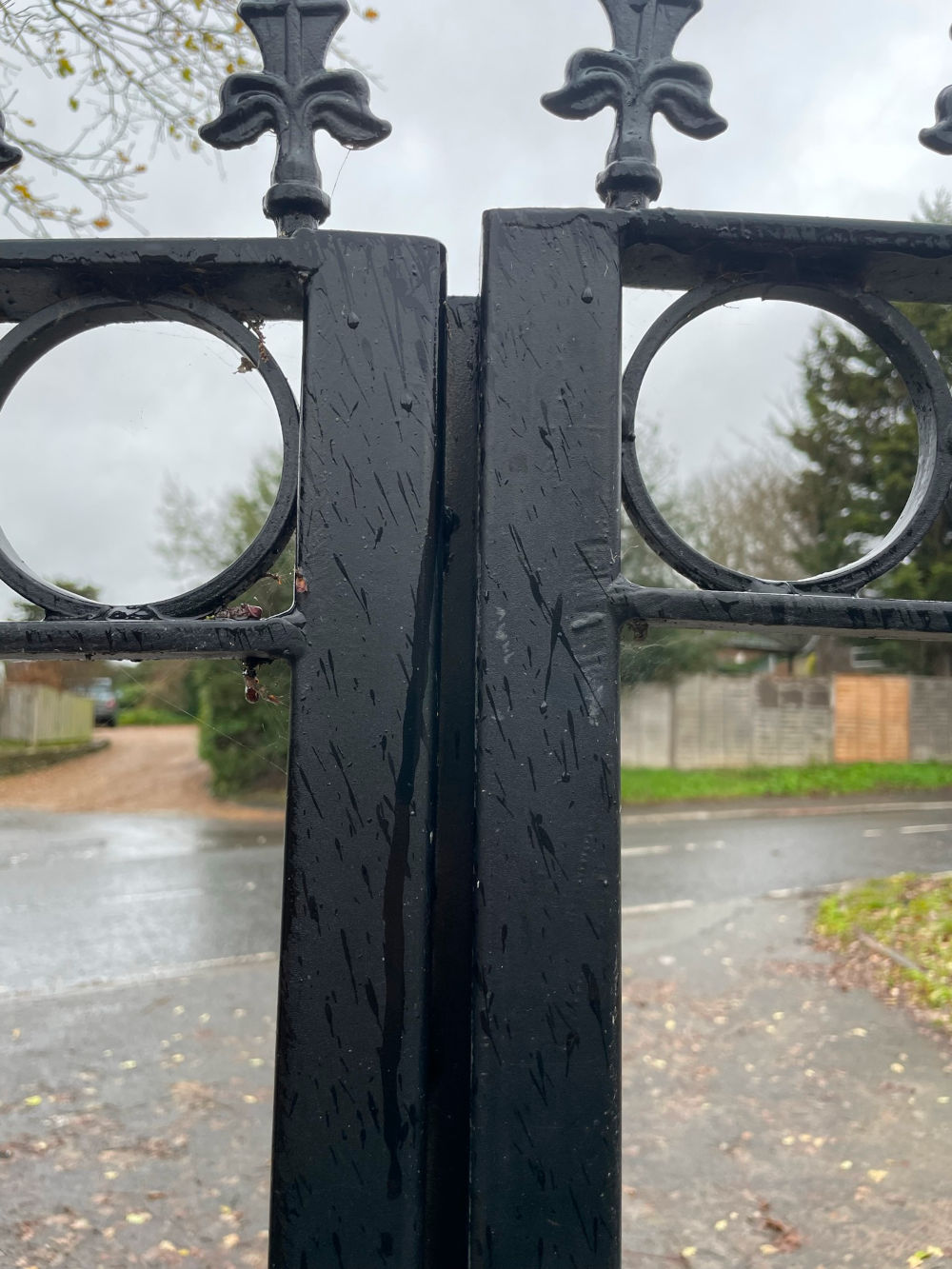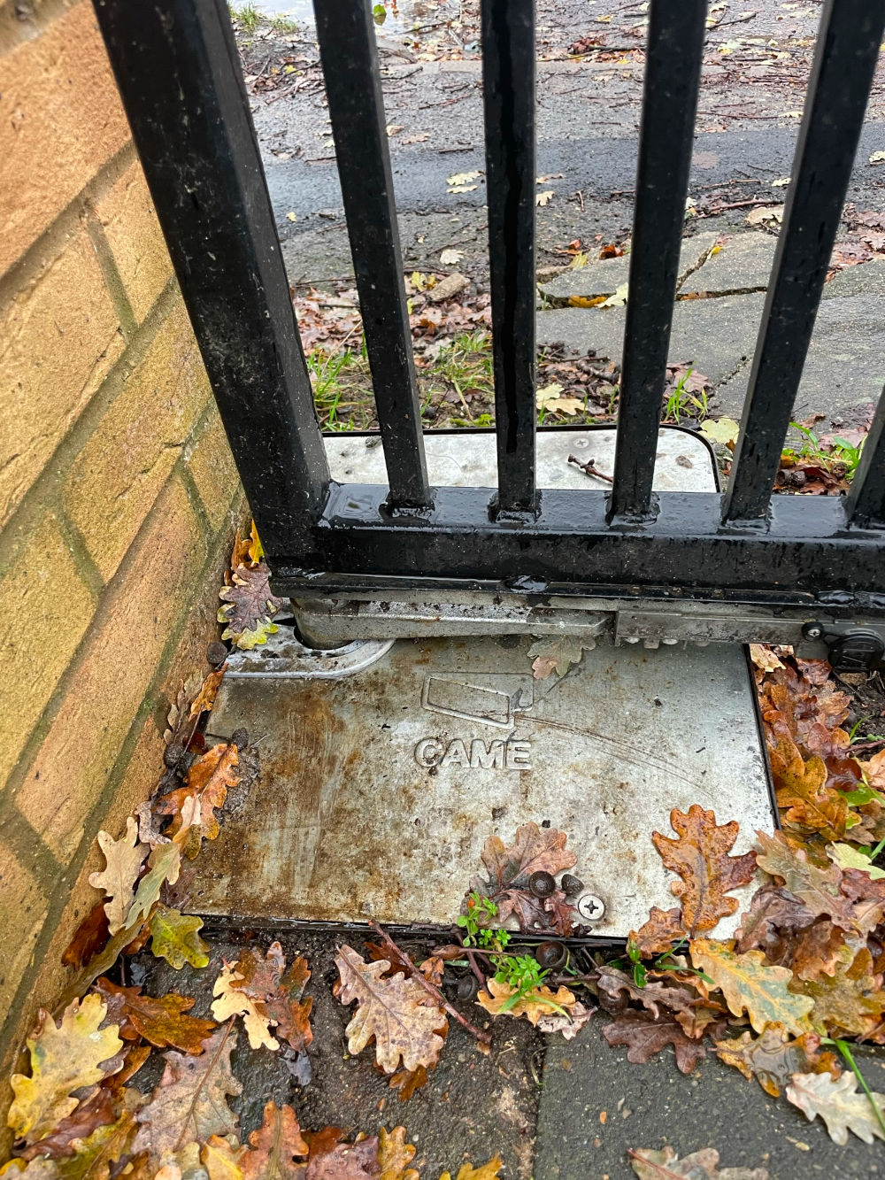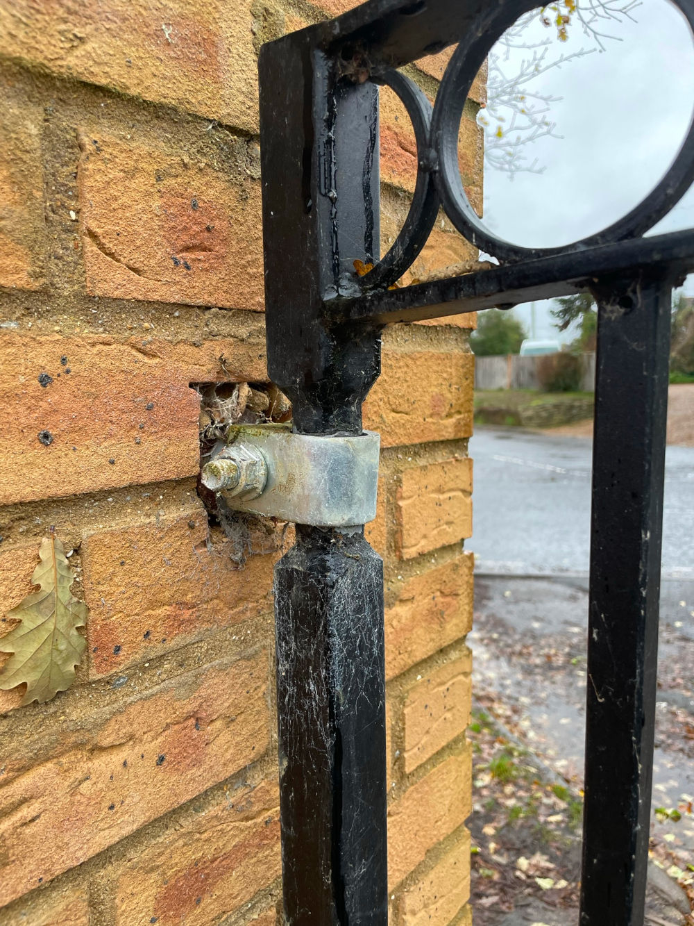 I've got a set of electric metal gates and one of them is slightly tilted which then requires a bit of help when opening/closing otherwise it gets stuck. I've tried to fix it by lifting it from the far end and then tightened the hinge but that made little to no difference. I think the problem is hinge is as tight as it can be but its not fully pushing back the metal. Is there anything I can insert between the gate and the hinge to tighten it further?