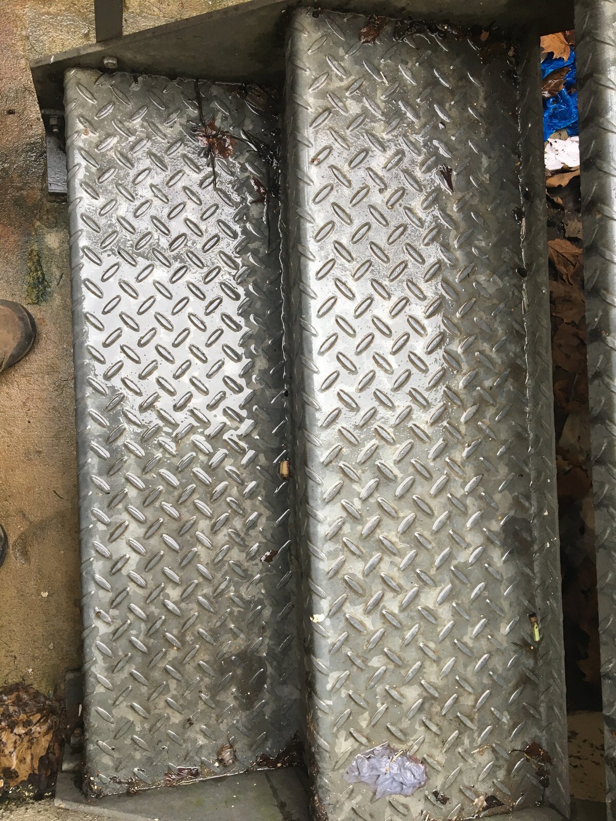 There are some steps outside the front of my basement flat, leading up to street level. See attached photo. They get quite slippery when the weather is rainy. I suspect it's just that they're quite old and perhaps the raised zig zag type profile (don't know what its proper name is) is a bit worn & smooth.