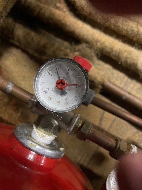 I've attached some pictures of the valve and pressure readings on the expansion tank next to it.