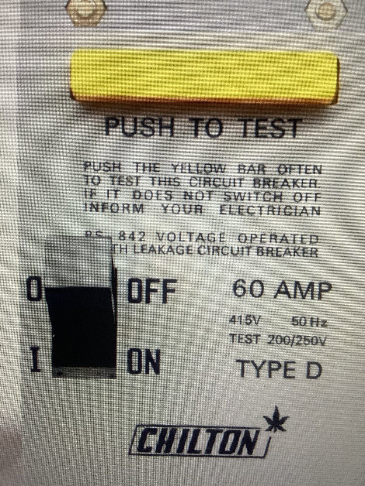 as part of "having a look", the Push To Test bar on the Ottermill ELCB (see photo) was pressed, which caused the ELCB to operate and the regular supply to the dwelling house was interrupted (viz, the lights went out)