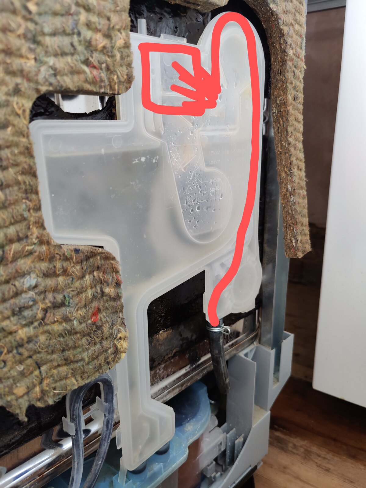 My Smeg DI6012 integrated dishwasher has suddenly started leaking from the rectangular opening near the top of it (which is not clearly visible unless you remove the air brake). I have checked the o rings at the bottom and they are not leaking, it is definitely coming out of the top as the water comes in through the inlet and splashes out of the opening before dropping to the base and out onto the floor. See photo showing water flow and square at the top which is open to the atmosphere and where water is splashing out from). I have temporarily stopped the leaking by reducing the water flow into the machine by half turning the inlet tap, but unsurprisingly the quality of the wash has now deteriorated due to lack of water. I have tested the inlet valve/solenoid and it seems to be working fine. I have searched online and can't find any ideas so help please!