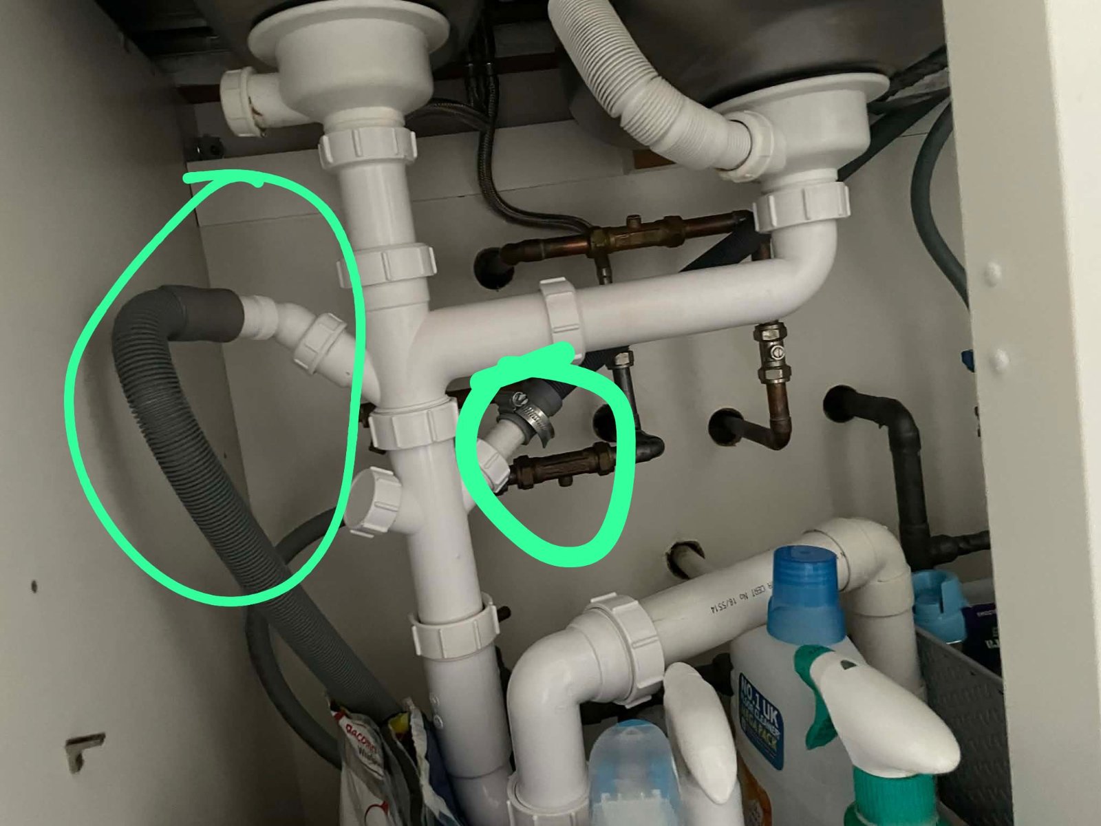 Hi..Looking for some help or ideas please.. the daughter has just replaced her faulty washing machine and now has a smelly.kitchen.. she has checked that the waste pipe is not blocked and thinks she jas connected it back up lile the old one.. the smell.seems to be at floor level she tells me.. Any ideas please from the image attached..? Thanks in advance..