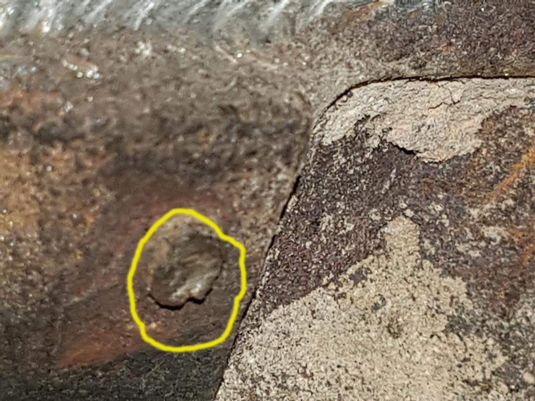 Unless you are spotting something I cant , the pattern above the the stud looks like the residue from stove rope?