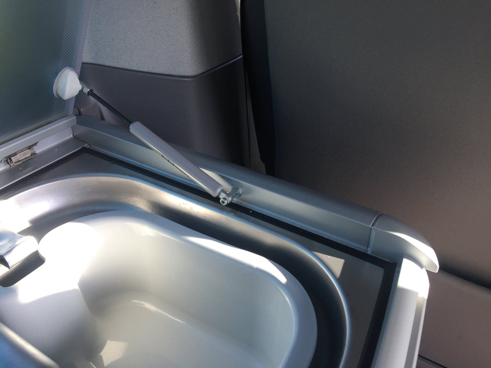 Alas, not that simple! I'm trying to slow down the last 20% of downward travel on a glass worktop in a campervan. The gas strut slows it to begin with, then drops it at the end. I was hoping to put a damper on the RHS of this picture, tucked in the corner. The gap from the edge of the sink to the lip on which the glass rests is 25mm.