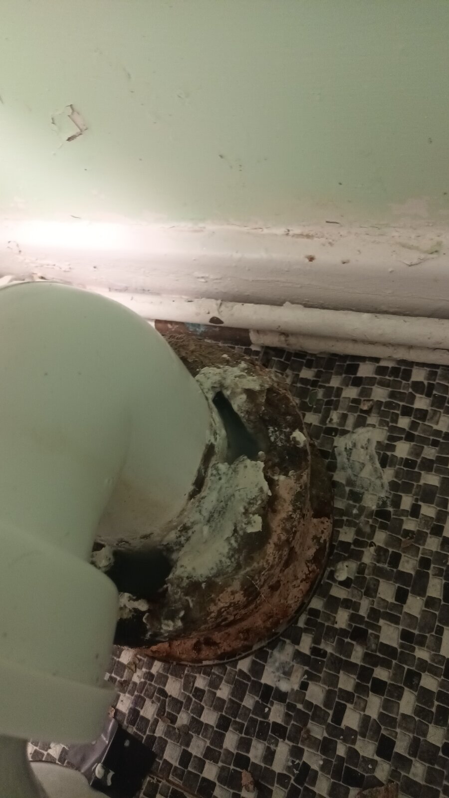 I noticed a gap in my internal sewer pipe where the iron barrel stack pipe has the narrower plastic pipe plumbed in and just been filled in with cement as the pipes are different circumfrances the iron barrel 4 inch been imperial and the later plastic pipe 85mm metric size. The cement ont the pipe has eroded away and the iron pipe quite corroded and thus left a quarter inch gap between the 2 pipes were they are joined could anyone help on how to reseal the gap on the pipe joint?