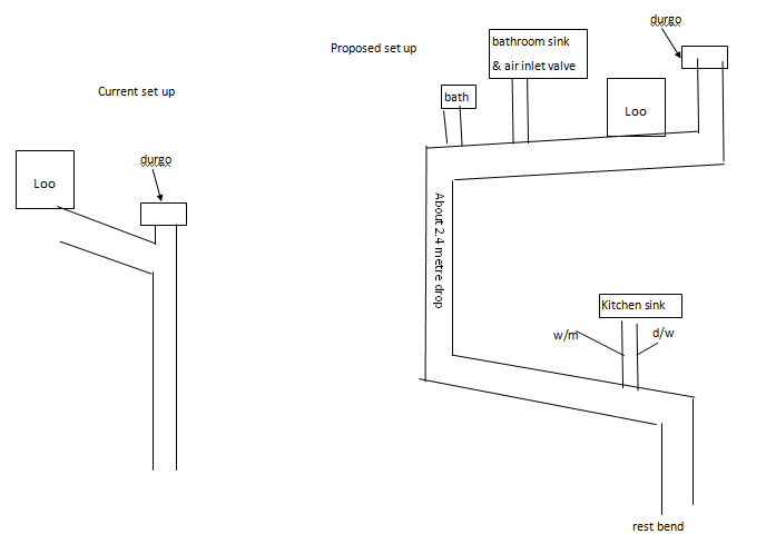 I plan to add an internal durgo upstairs next to the loo and an air inlet valve to the bathroom sink waste to avoid any vacuum from flushing.