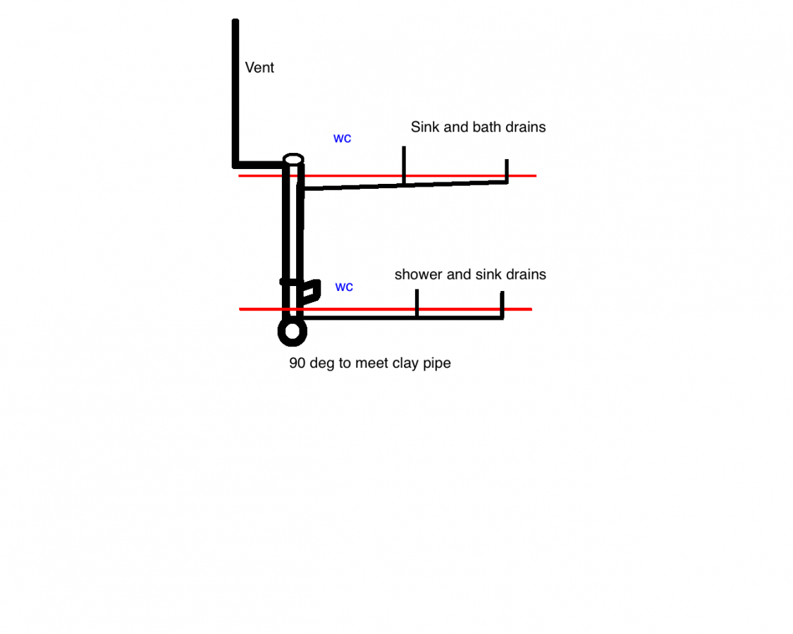 I can come under then suspended floor at a suitable slope to where I want the new pipe to go up the wall. I have a branch in mind for the downstairs toilet which is fine but as it goes up to the 1st floor what do I need to terminate the stack and take a branch in 3" up to the roof vis some discreet boxing and out through the roof. BCO has approved this but I am confused about the order of fittings.