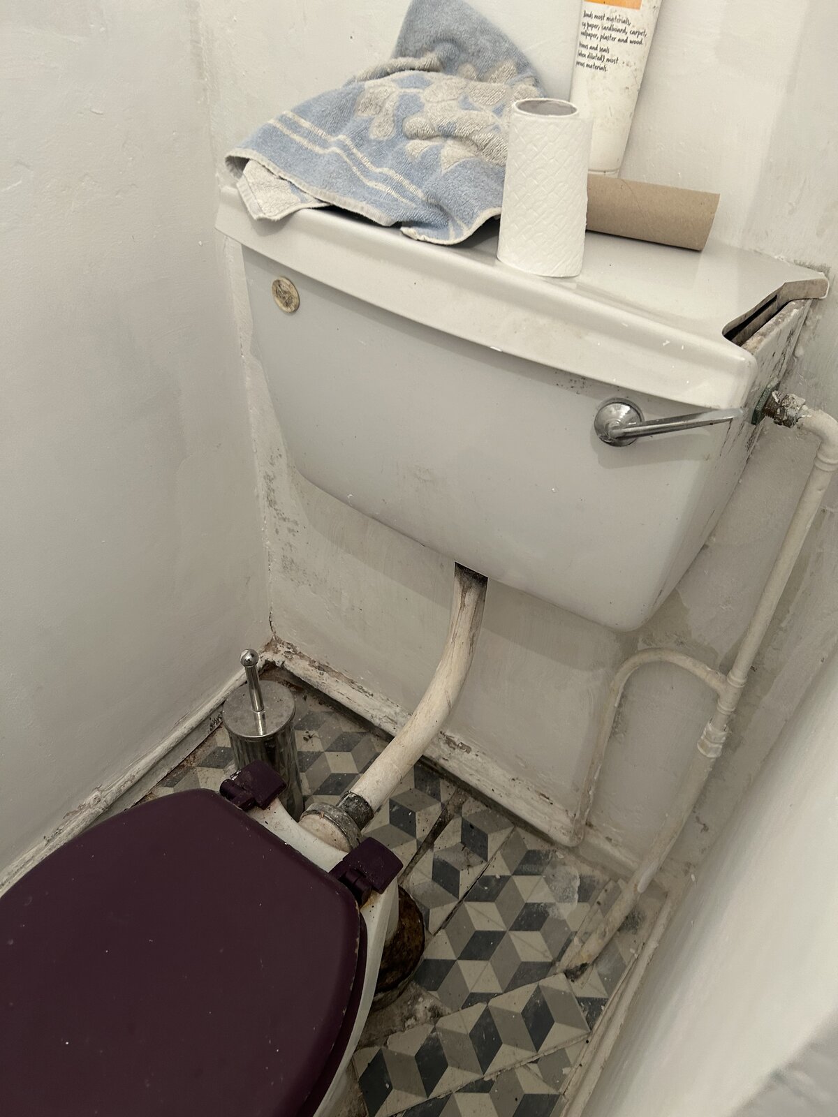 I want to try and fit a new downstairs toilet into a renovation I've just started. The soil pipe is a bit away from the wall, so not sure what options there are for the new toilet. I'd like to avoid the long pipe from the cistern, but don't know how I could Brin g the cistern forward. I'm a complete plumbing novice so grateful for any advice. Couple of pictures attached will hopefully explain the situation better