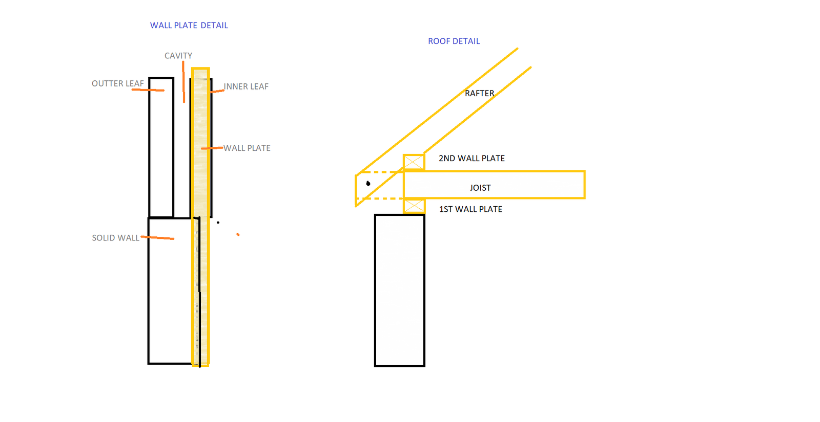 as the wall thickness differ in thickness, i can't get a continuous straight wall plate as part of the wall plate would be floating in the cavity space. this in turn makes it impossible to cut the roof rafters at the same size etc.