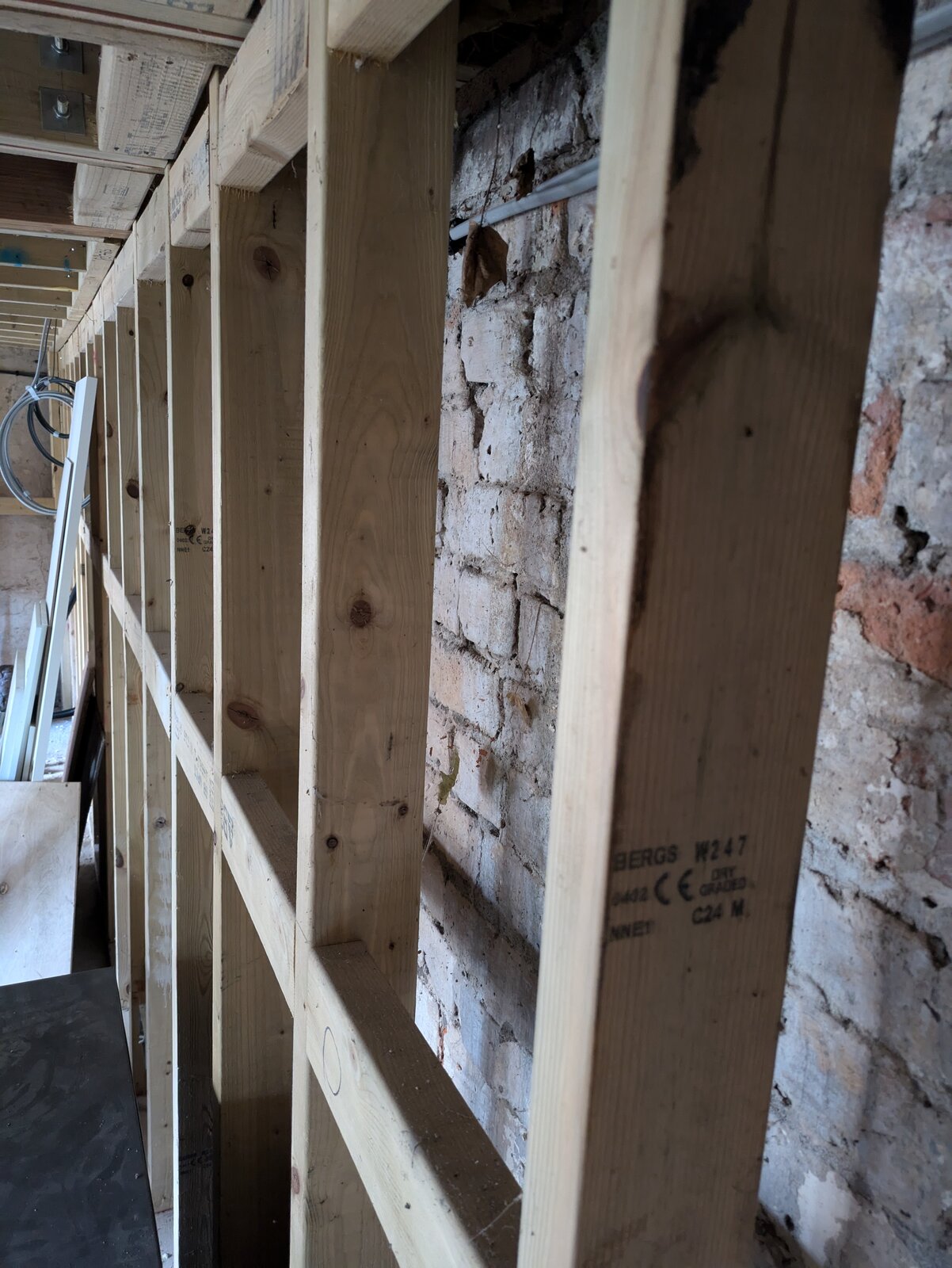 - put 50mm pir between studs behind ladders/noggins and 50mm attached to the back of the frame in space for cold bridging stop. overall 100mm