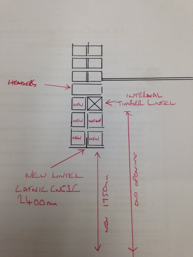I'm currently removing some patio doors to shorten the opening height to allow for double doors and a wall plate for a flat roof which will run across the sagging soldiers. I'm going to add a lintel as there's no external one at present (1930's semi). I just wanted to know if it's OK to use this catnic cn51c lintel I've found as I need to brick up both faces to lower the height to allow for some double doors as this will eventually be internal. Opening is 2100mm lintel will be 2400mm.