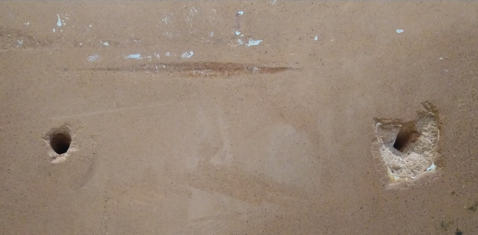 I have removed toilet cistern from the solid wall that was plastered over in the bathroom.. I have removed the old rusted screws... This has left a 2 in deep hole and some bigger 2 inch width superficial damage of the surface plaster... How can I repair the hole so it's as strong a wall as before the holes were drilled? ... I presume Polly filla is just soft and powdery and weak to drill holes back into and it will just disintegrate... I have to used the same location but it needs to be strong like the holes are being drilled for the first time if that makes sense.