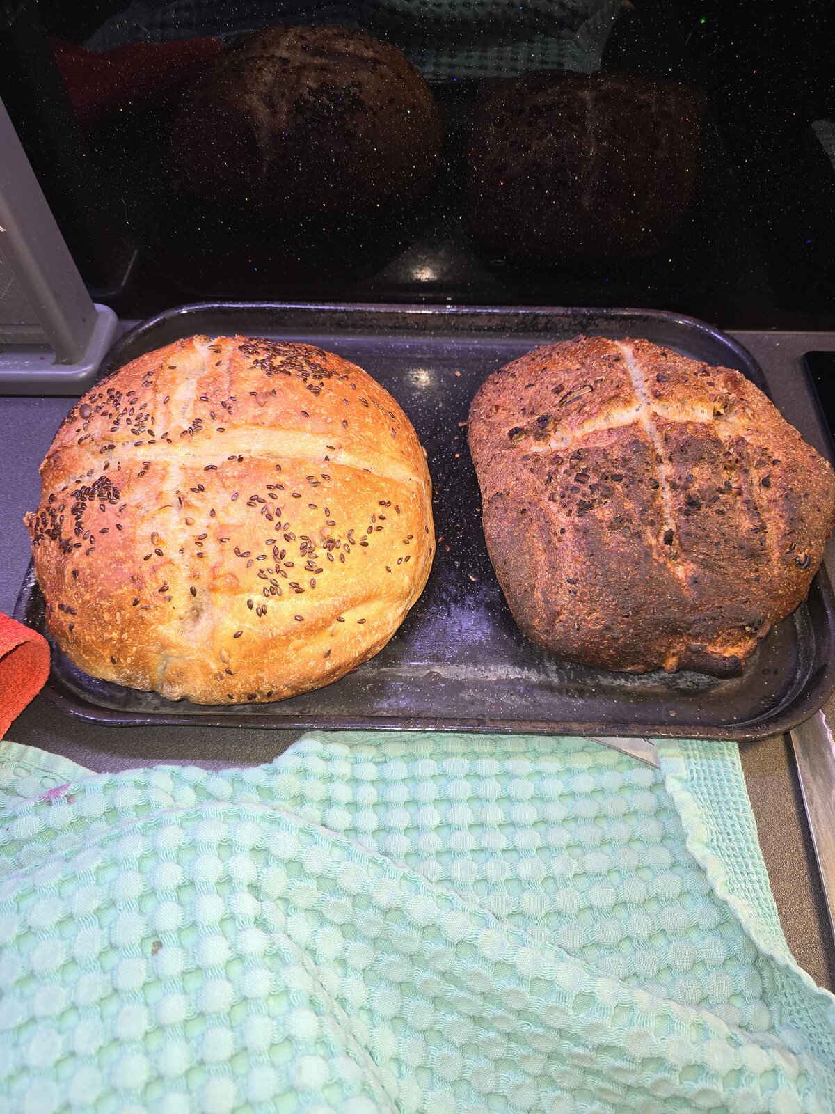 Dutch Over loaf left looks OK. The burnt one right, not so.