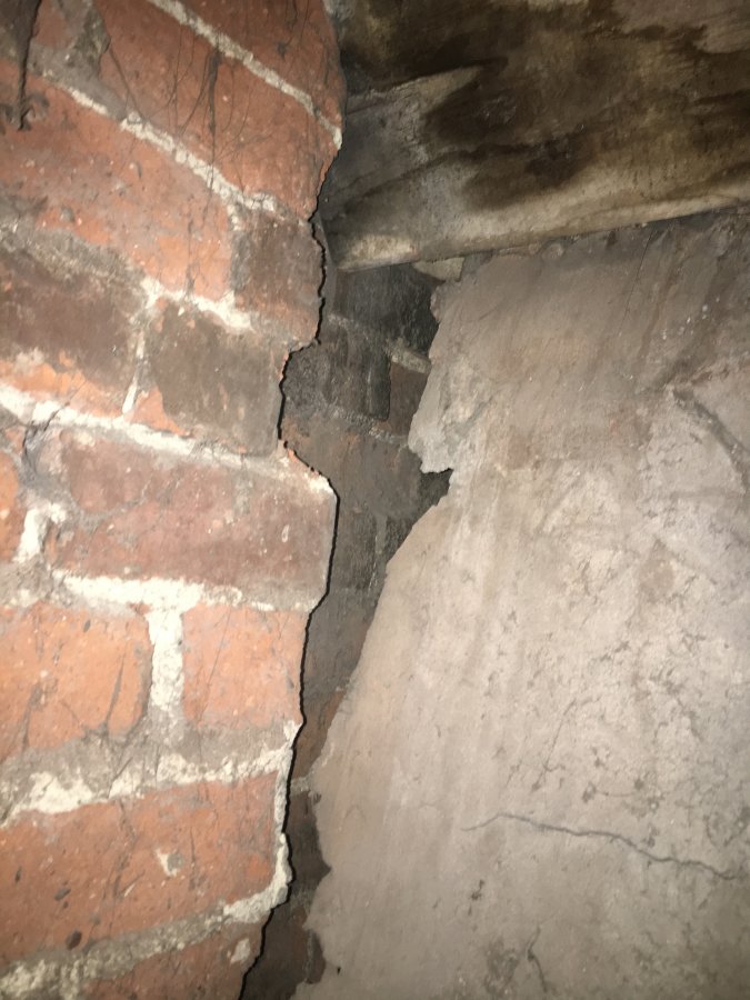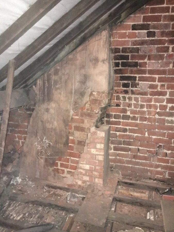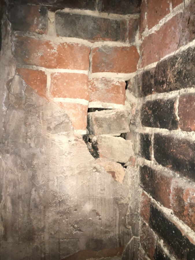 Knocking the plaster off I see there's a dirty great hole in the chimney, nothing is keyed in to the wall and the mortar is crumbling !!!