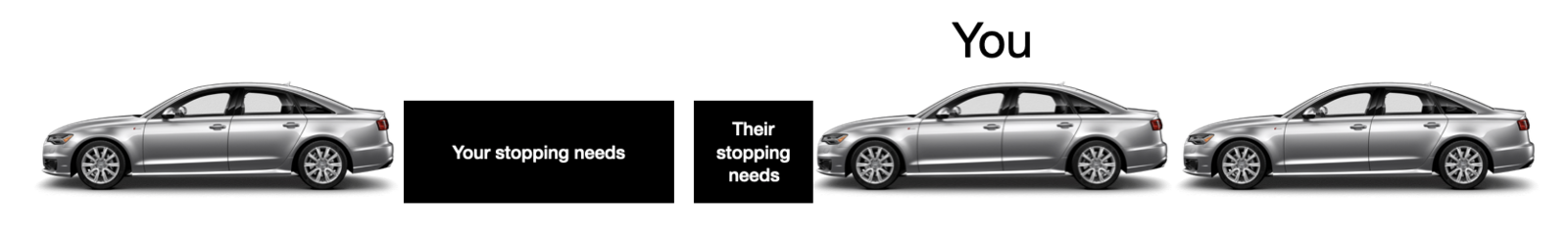 you've misunderstood. You add their stopping needs in front, not behind. Again, you only have control of one vehicle, the one you are driving