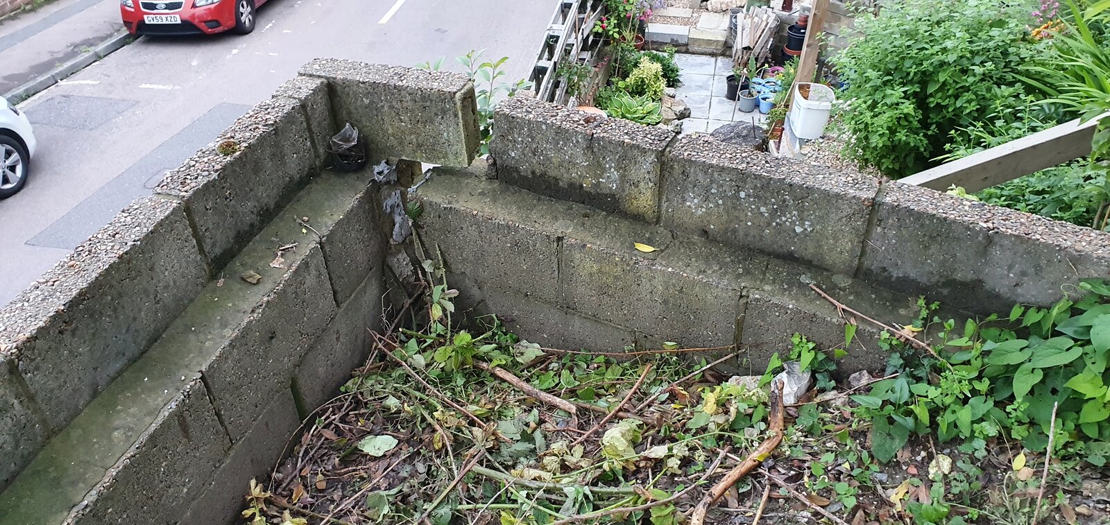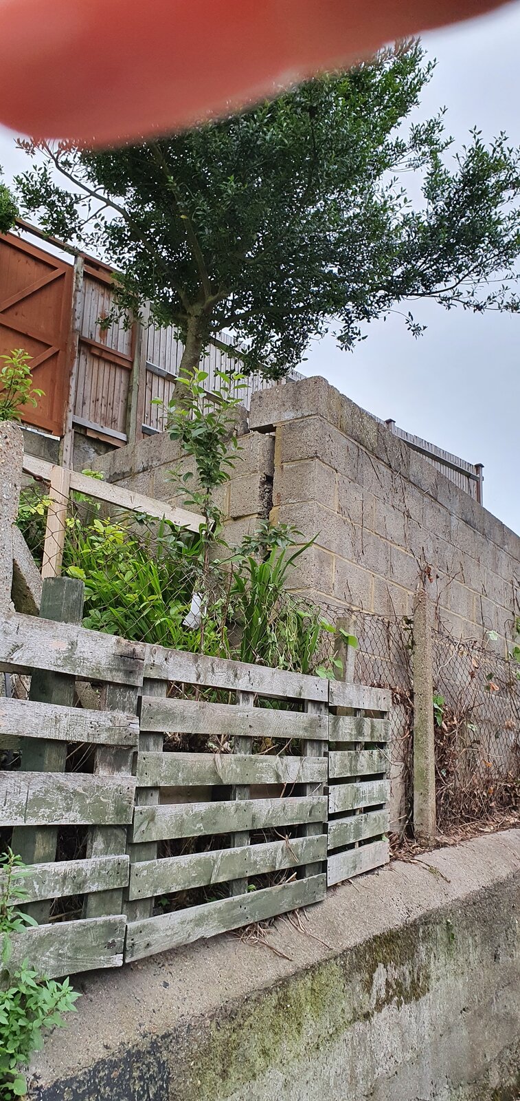 We have a garden retaining wall which has split on both sides, there are no other cracks along the wall. There were 2 medium size trees, bay tree and a holly tree which has been removed now. We're thinking that the roots of the bay tree were pushing onto the wall. It was planted by a previous owner about a metre away from the wall. The other tree was further back. Also we can't see any drainage holes which doesn't probably help when it rains.