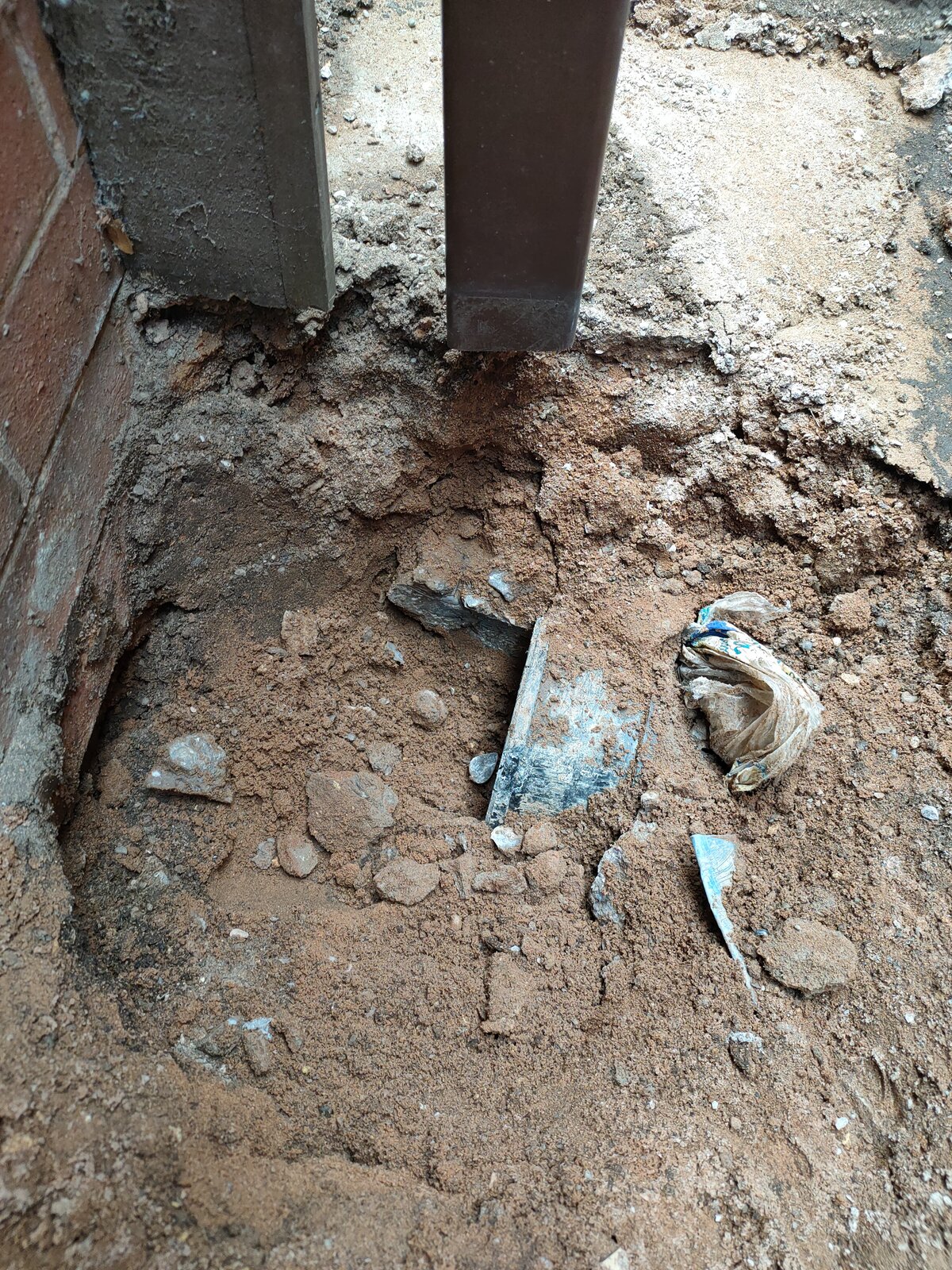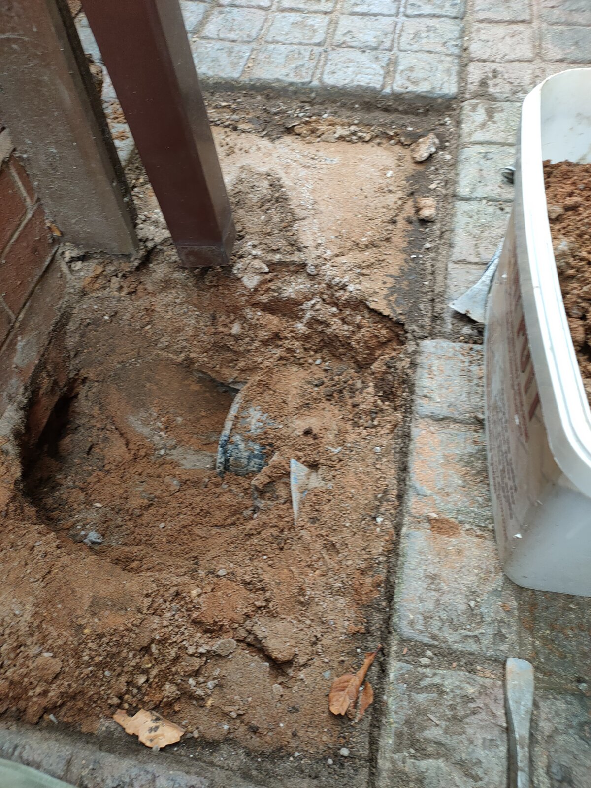 Hi, I've just swept cracked concrete away from around downspout at side of house, and it came away in a few lumps.