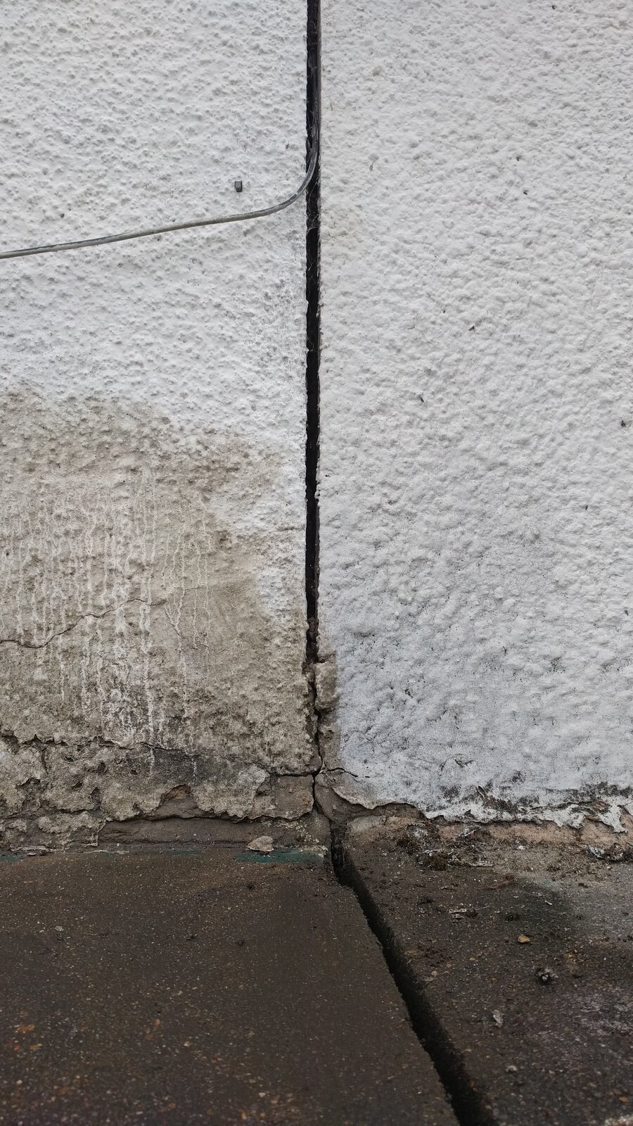 Inside - you'll see the stain on the joining property wall. The plaster is minimally raised in parts to the touch, but doesn't appear to be seperating from the wall at all.