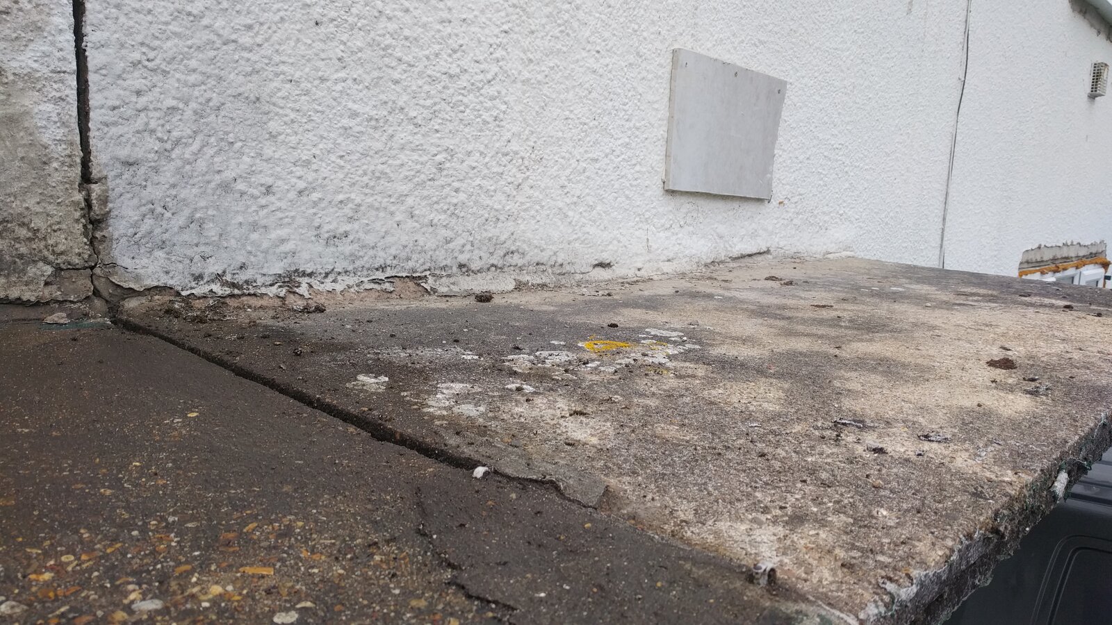 Exterior - there is a gap on both the porch roof and a vertical gap joining with our neighbours house. It's unclear what purpose these gaps serve, e.g. for air flow. Could this allow a channel of water to go behind the exterior render, especially if it pools on the flat roof?