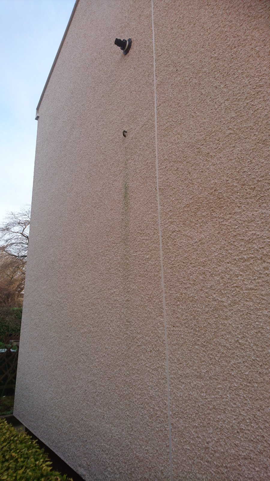 Hi , can anyone tell me why there is a green stain on my gable end wall , which seems to have come from the combi boilers pressure release valve vent pipe ,i believe the pipe should face the wall which it does , so why is the wall turning green , house was pebble dashed just over a year ago, if i can't find the answer my only option is to get the pipe extended out further from the wall & hopefully that will help , see photo ,